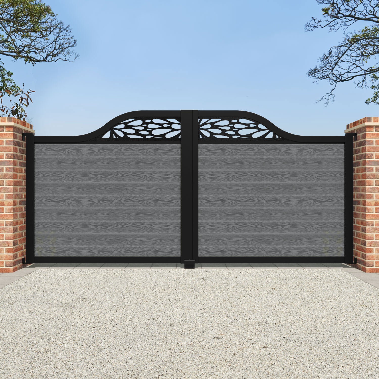 Classic Blossom Curved Top Driveway Gate Mid Grey - Top Screen