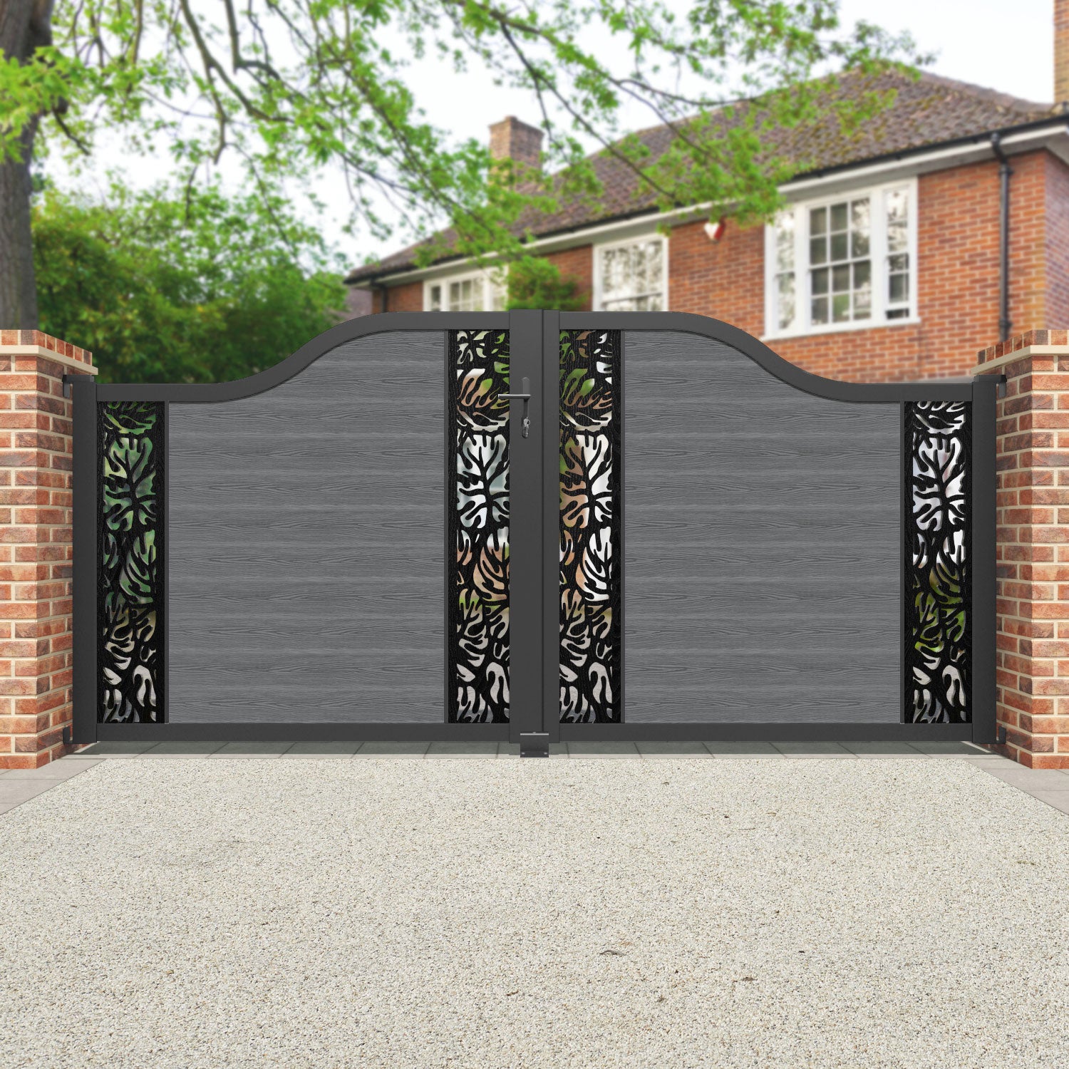 Reference: Classic Botanic Curved Top Driveway Gate - Mid Grey - Middle & End Screen