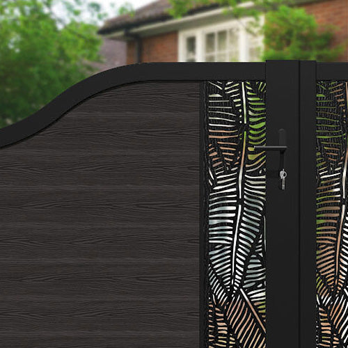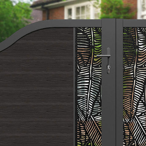 Classic Feather Curved Top Driveway Gate Dark Oak - Middle Screen
