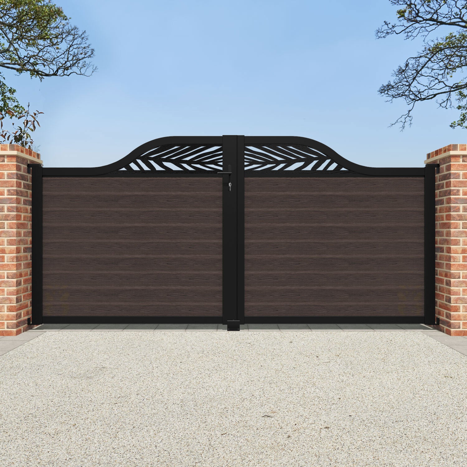 Classic Palm Curved Top Driveway Gate Mid Brown - Top Screen