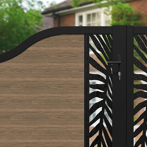 Classic Palm Curved Top Driveway Gate Teak - Middle Screen