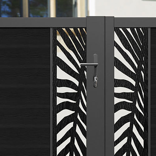 Classic Palm Straight Top Driveway Gate Black - Middle & End Screen