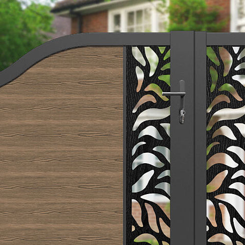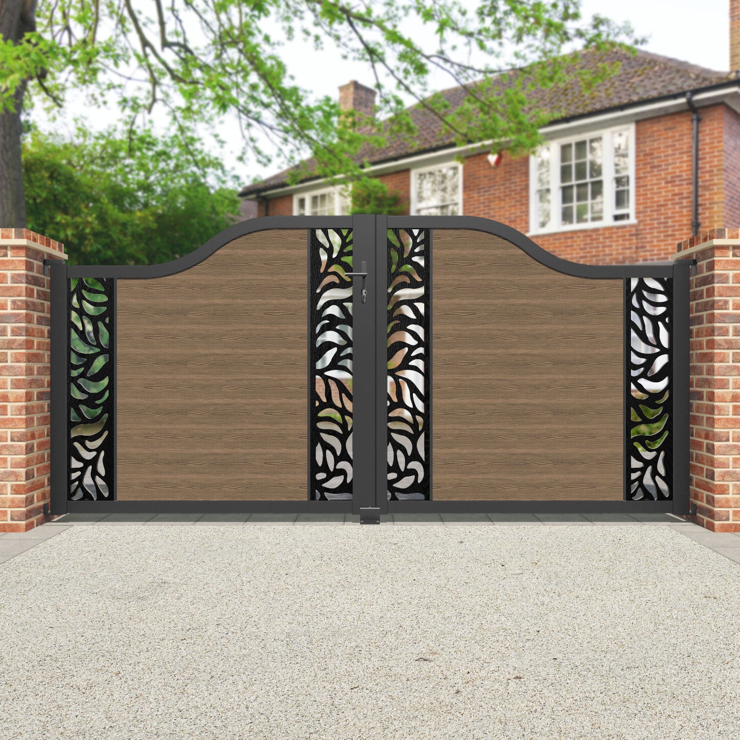 Classic Plume Curved Top Driveway Gate Teak - Middle & End Screen