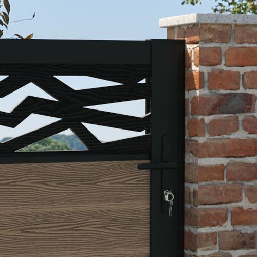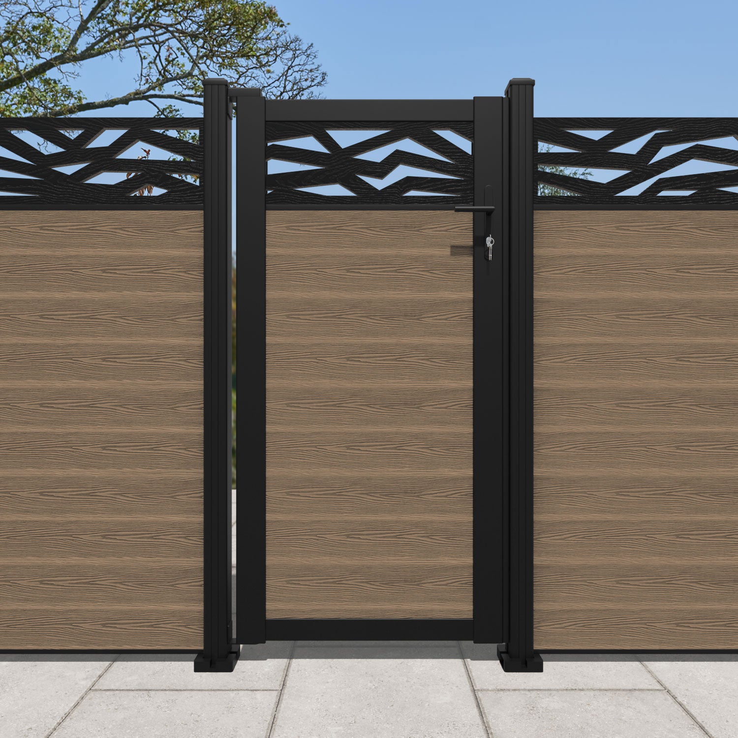 Classic Zenith Straight Top Driveway Gate - Teak - Middle & End Screen