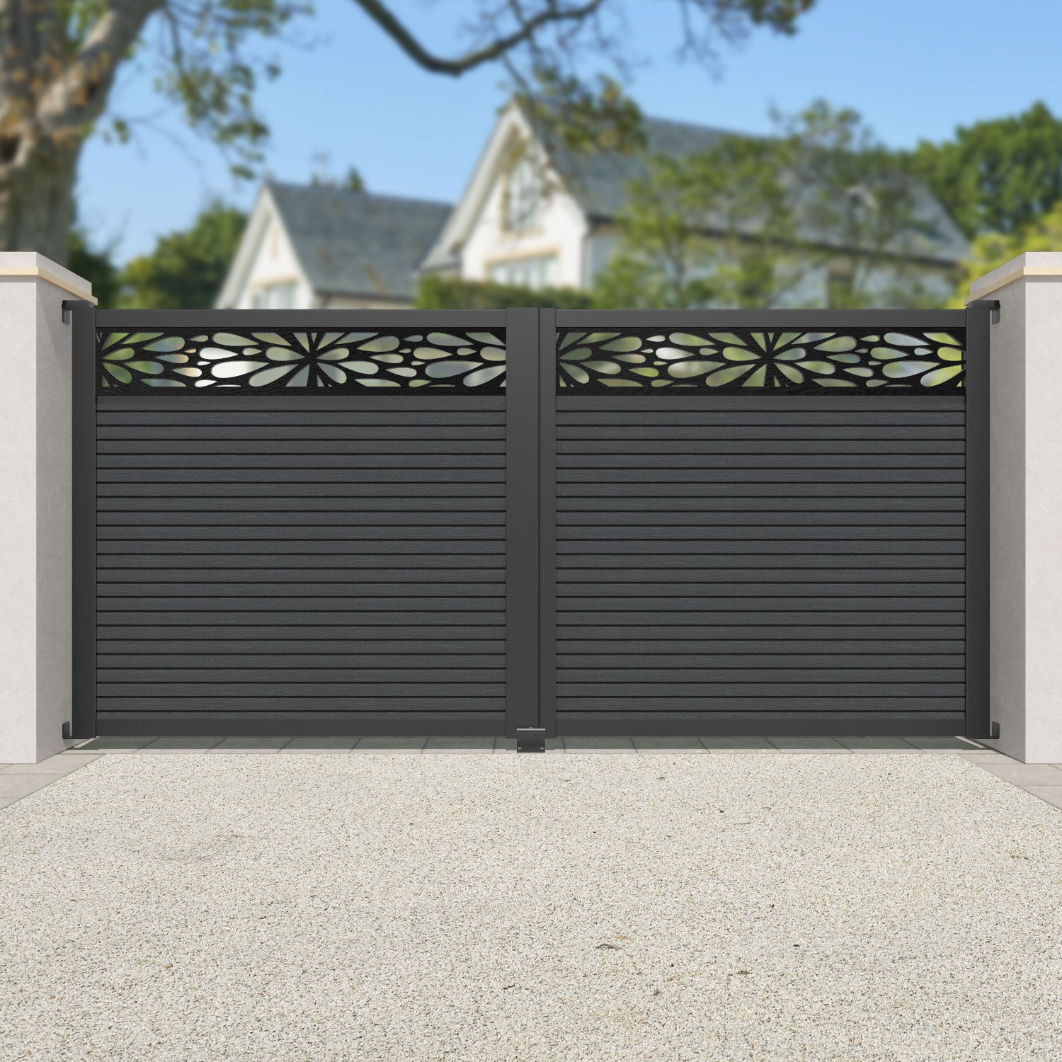 Hudson Blossom Straight Top Driveway Gate Dark Grey - Top Screen