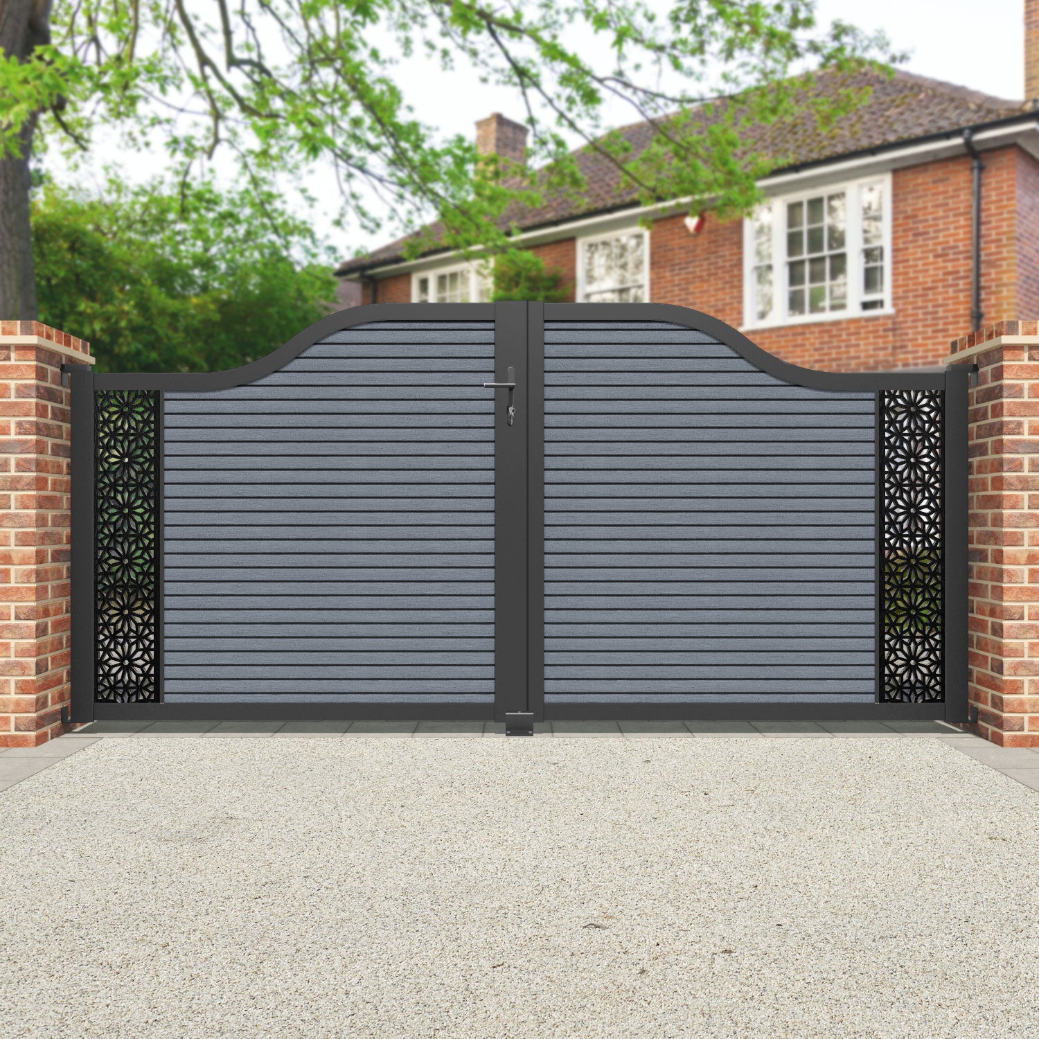 Pair your gate with our eco-friendly composite or aluminium slats for a seamless match with our fencing collections, ensuring a stylish and cohesive look.