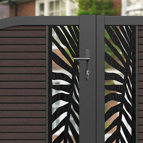 Hudson Palm Curved Top Driveway Gate Mid Brown - Middle & End Screen
