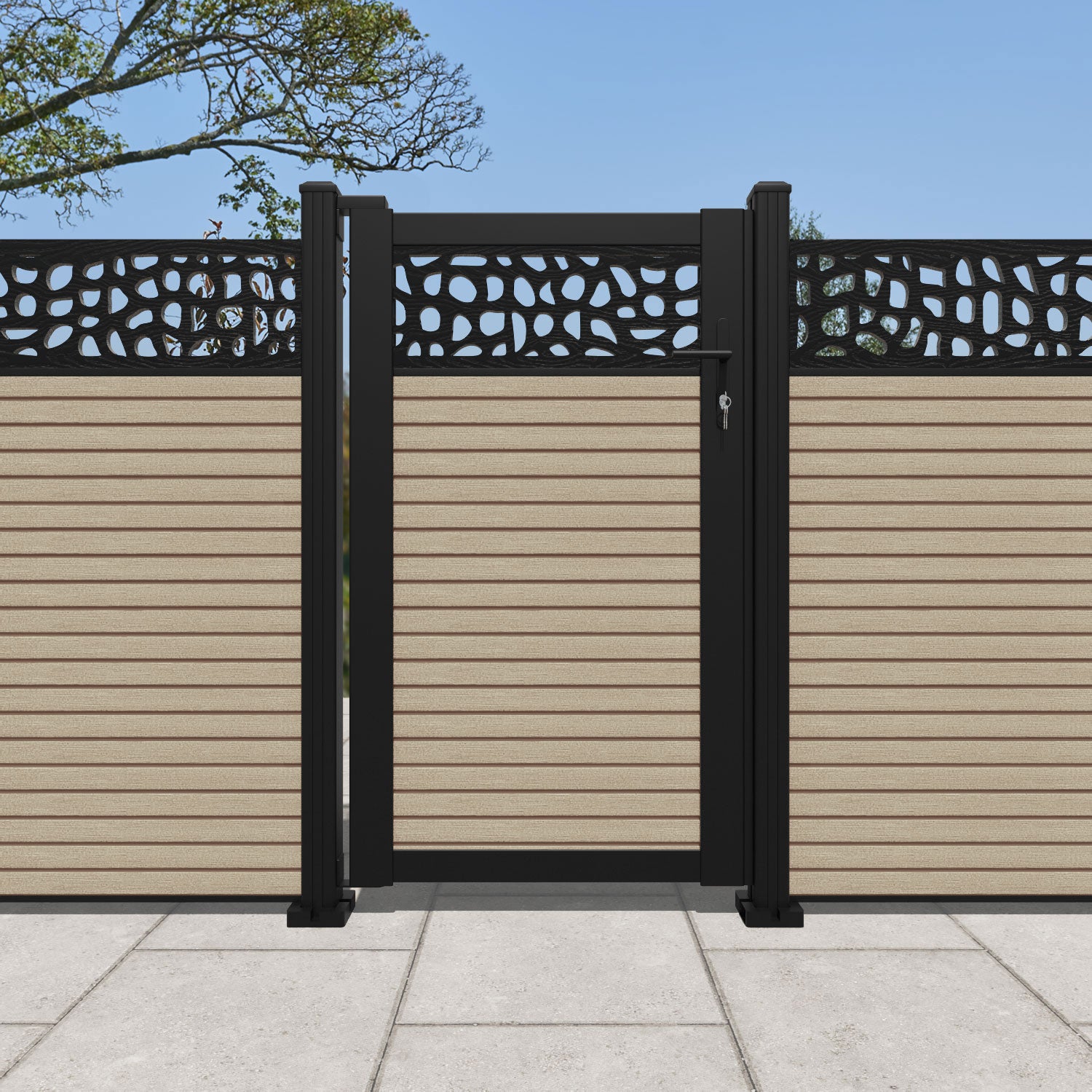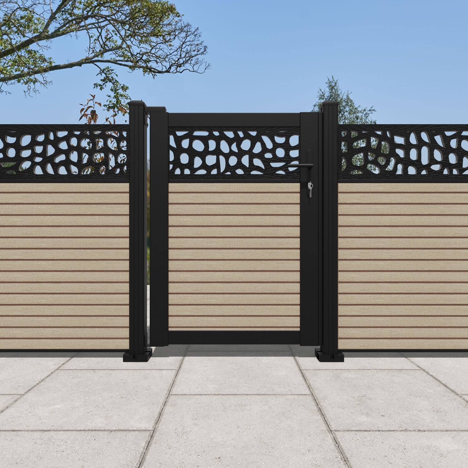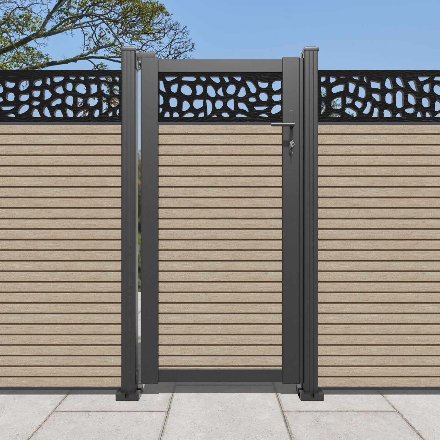 Pair your gate with our eco-friendly composite or aluminium slats for a seamless match to our fencing collections, ensuring a stylish and cohesive look.