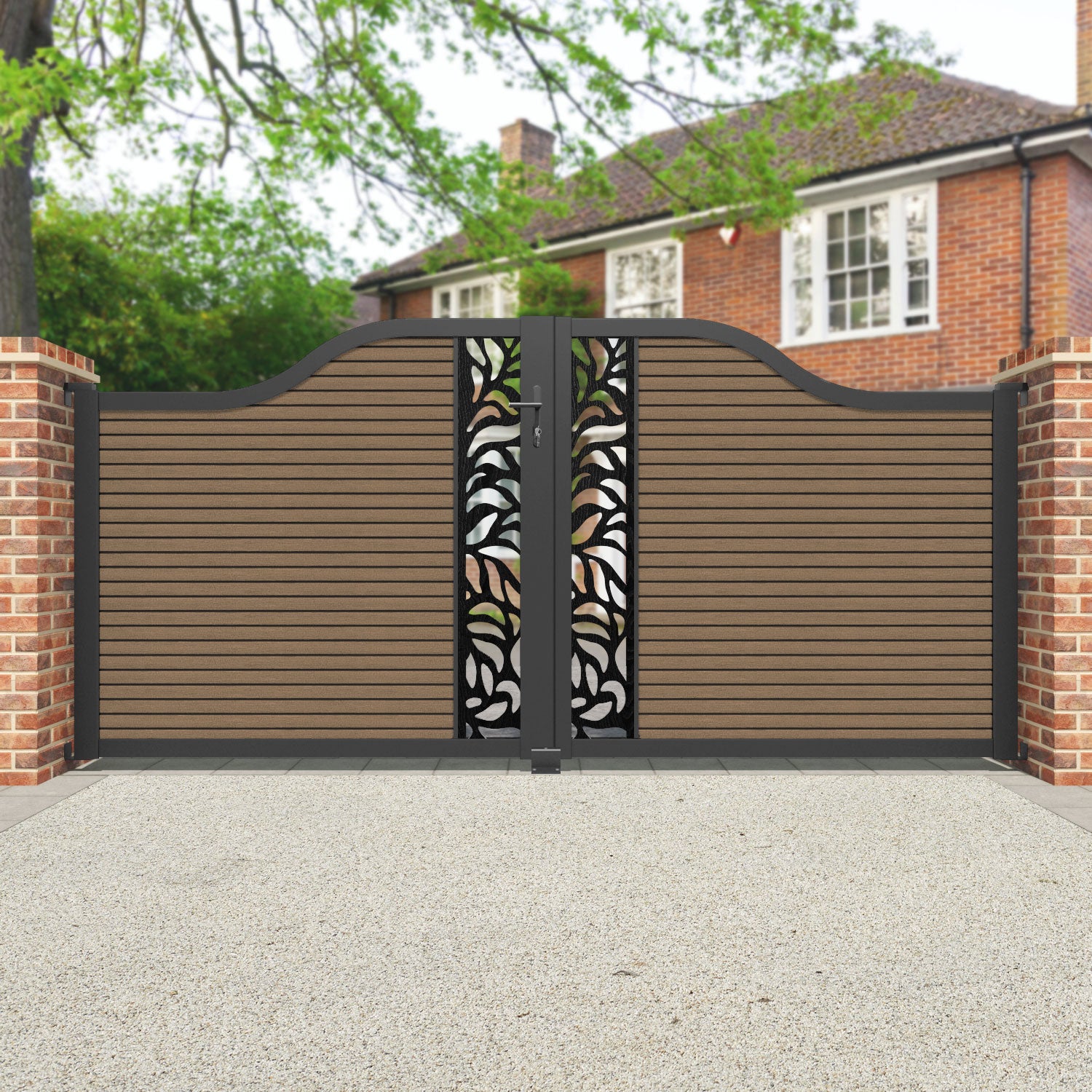Hudson Plume Curved Top Driveway Gate Teak - Middle Screen
