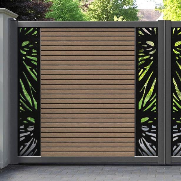 Hudson Poppy Straight Top Driveway Gate Teak - Middle & End Screen