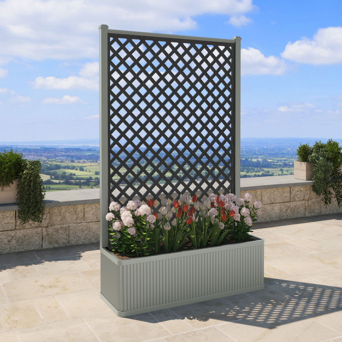 The planters are available in 6 different sizes and can be paired with any of our decorative screens that are available in 5 different colour options. The screens can be fixed at the back or in the centre of the planter. The centre option enables you to plant on both sides of the screen. They can also be ordered with a wheeled base for convenience, with lockable wheels for stability.
