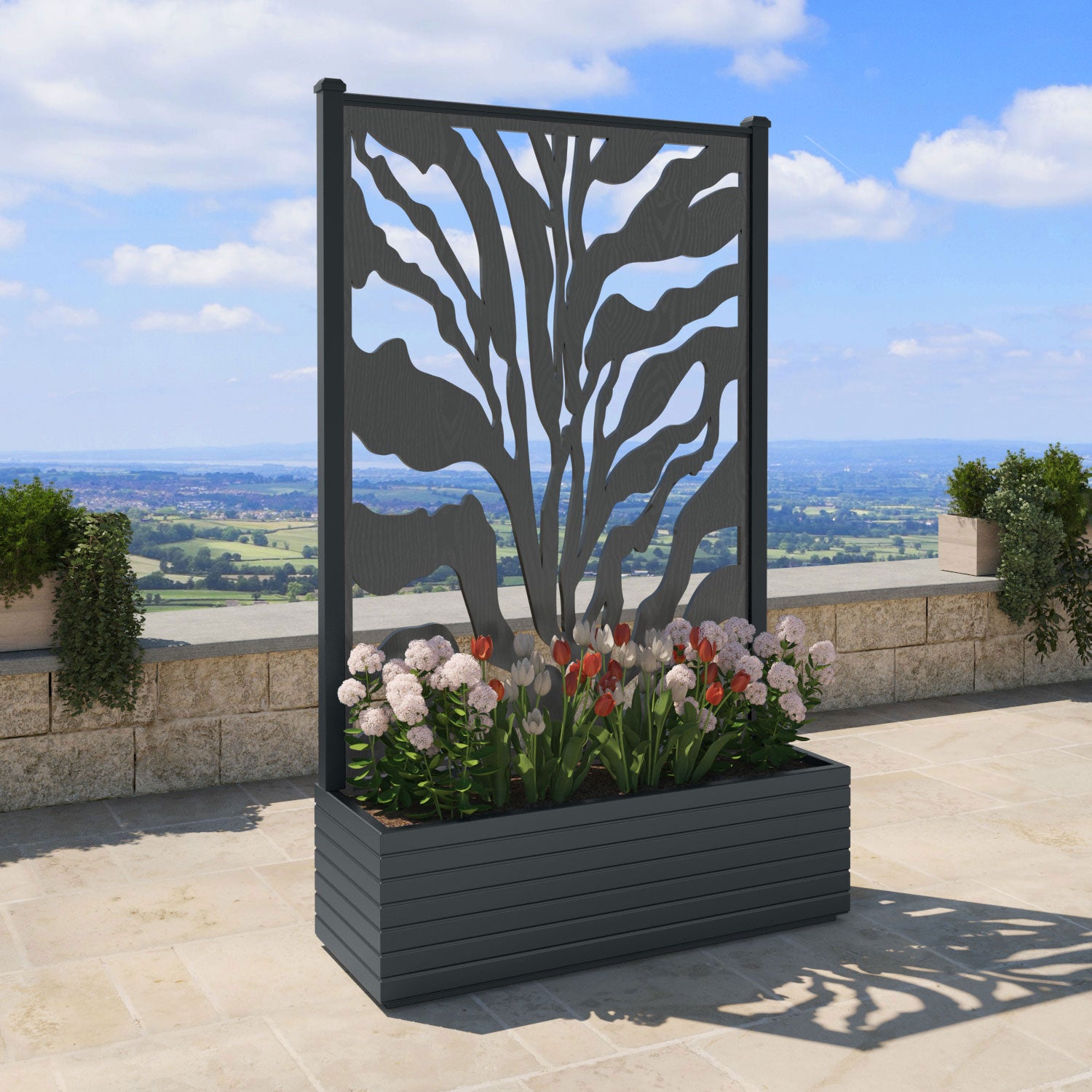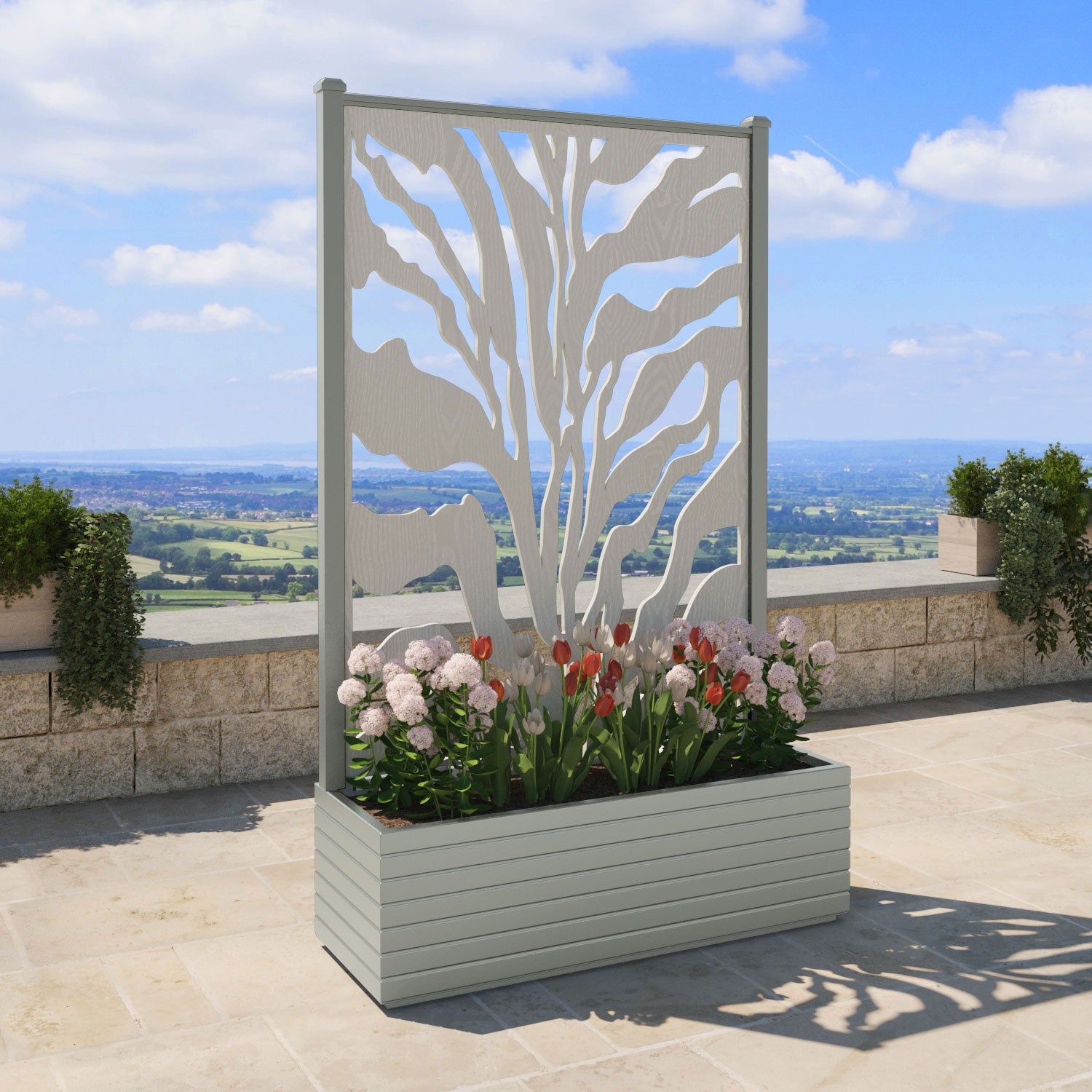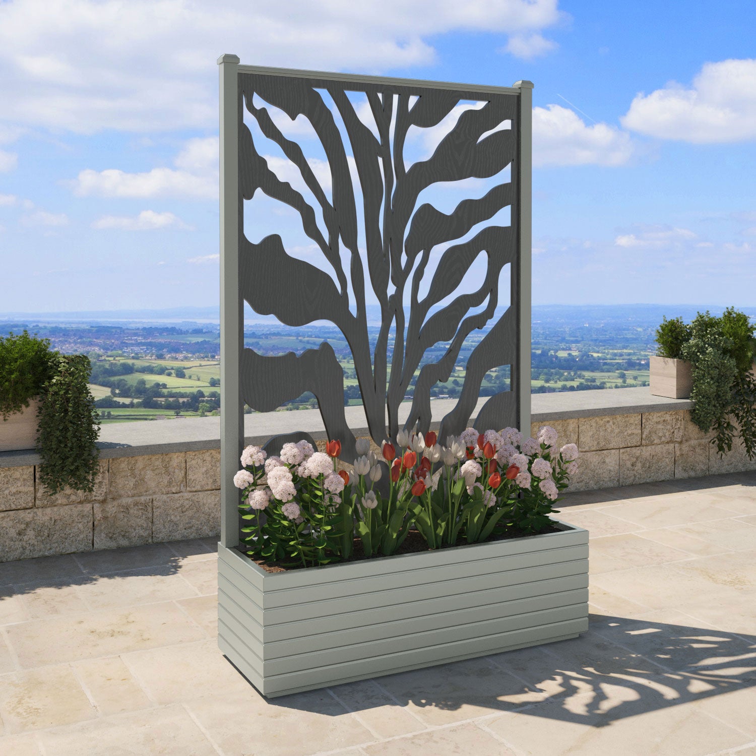 The planters are available in 6 different sizes and can be paired with any of our decorative screens that are available in 5 different colour options. The screens can be fixed at the back or in the centre of the planter. The centre option enables you to plant on both sides of the screen. They can also be ordered with a wheeled base for convenience, with lockable wheels for stability.