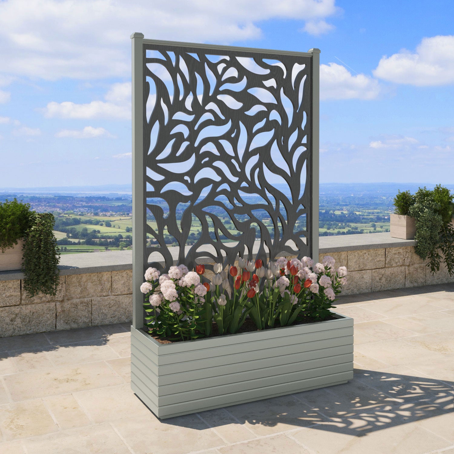 The planters are available in 6 different sizes and can be paired with any of our decorative screens that are available in 5 different colour options. The screens can be fixed at the back or in the centre of the planter. The centre option enables you to plant on both sides of the screen. They can also be ordered with a wheeled base for convenience, with lockable wheels for stability.