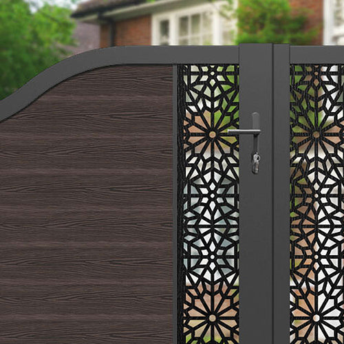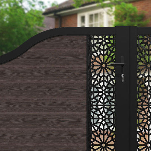 Classic Alnara Curved Top Driveway Gate - Mid Brown - Middle & End Screen