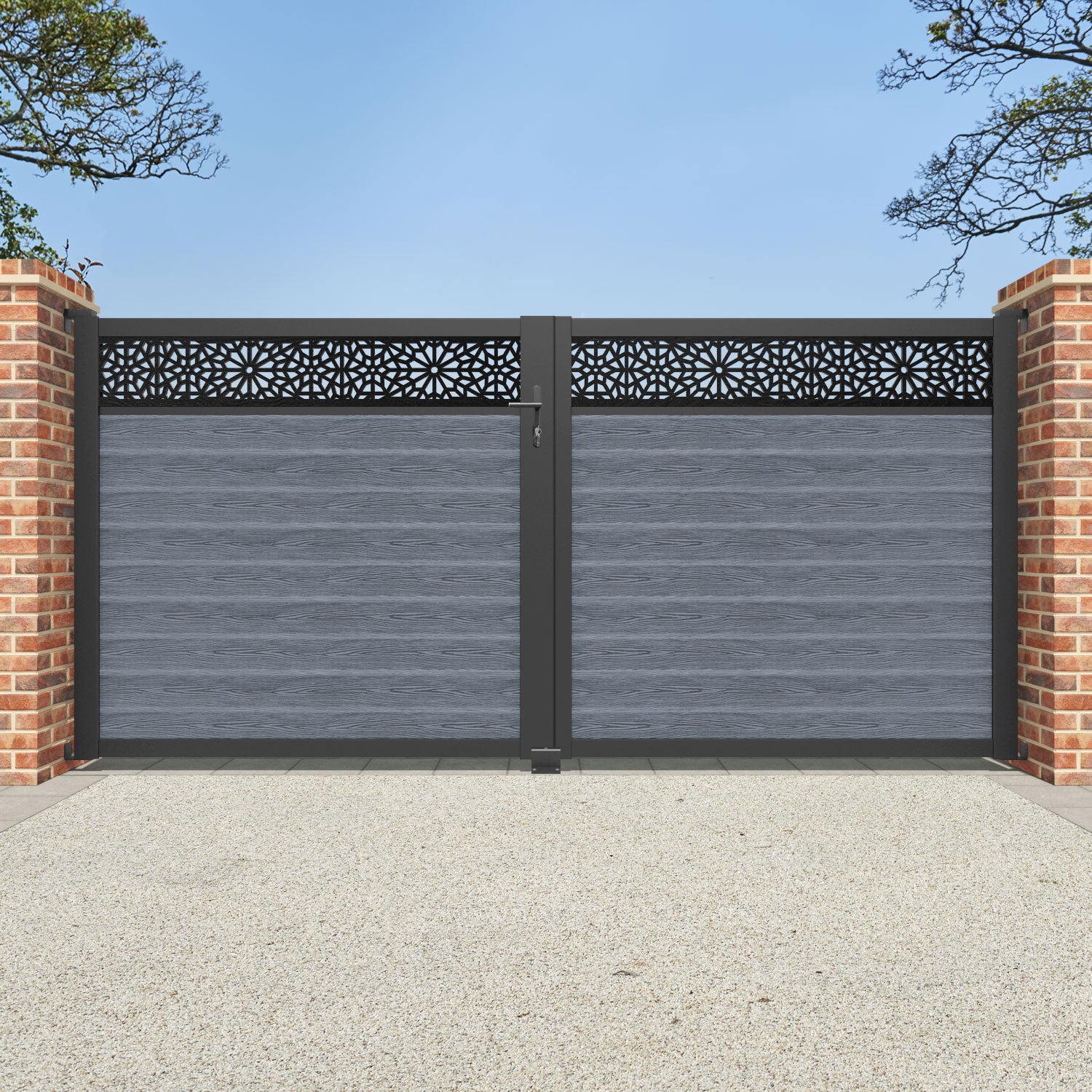 Pair your gate with our eco-friendly composite or aluminium slats for a seamless match with our fencing collections, ensuring a stylish and cohesive look.