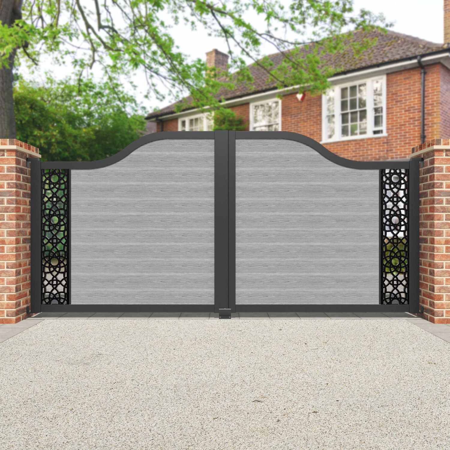 Classic Ambar Curved Top Driveway Gate Light Grey - End Screen