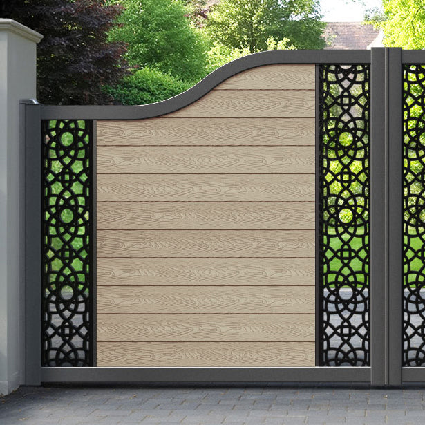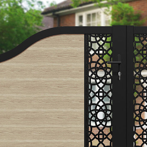 Classic Ambar Curved Top Driveway Gate Light Oak - Middle & End Screen
