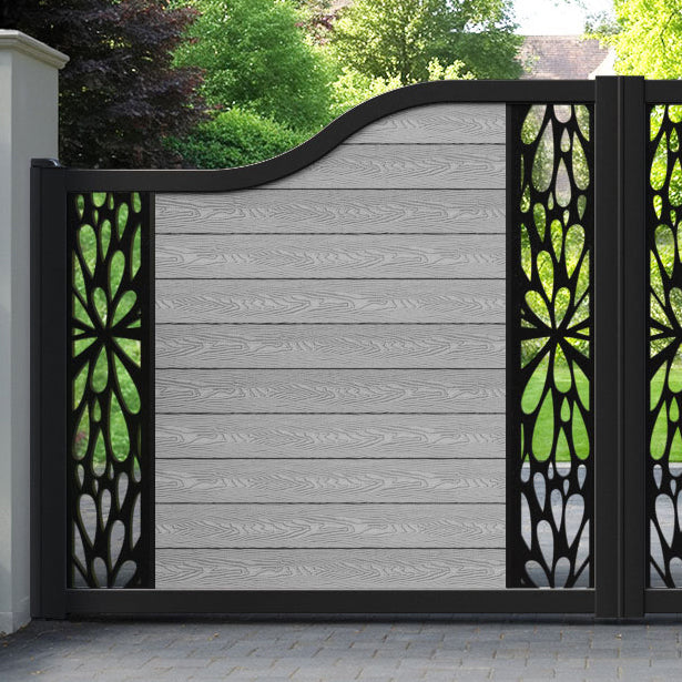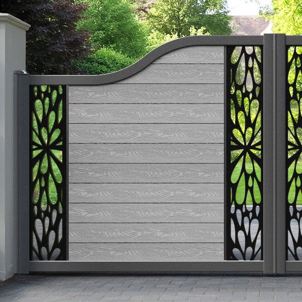 Classic Blossom Curved Top Driveway Gate Light Grey - Middle & End Screen