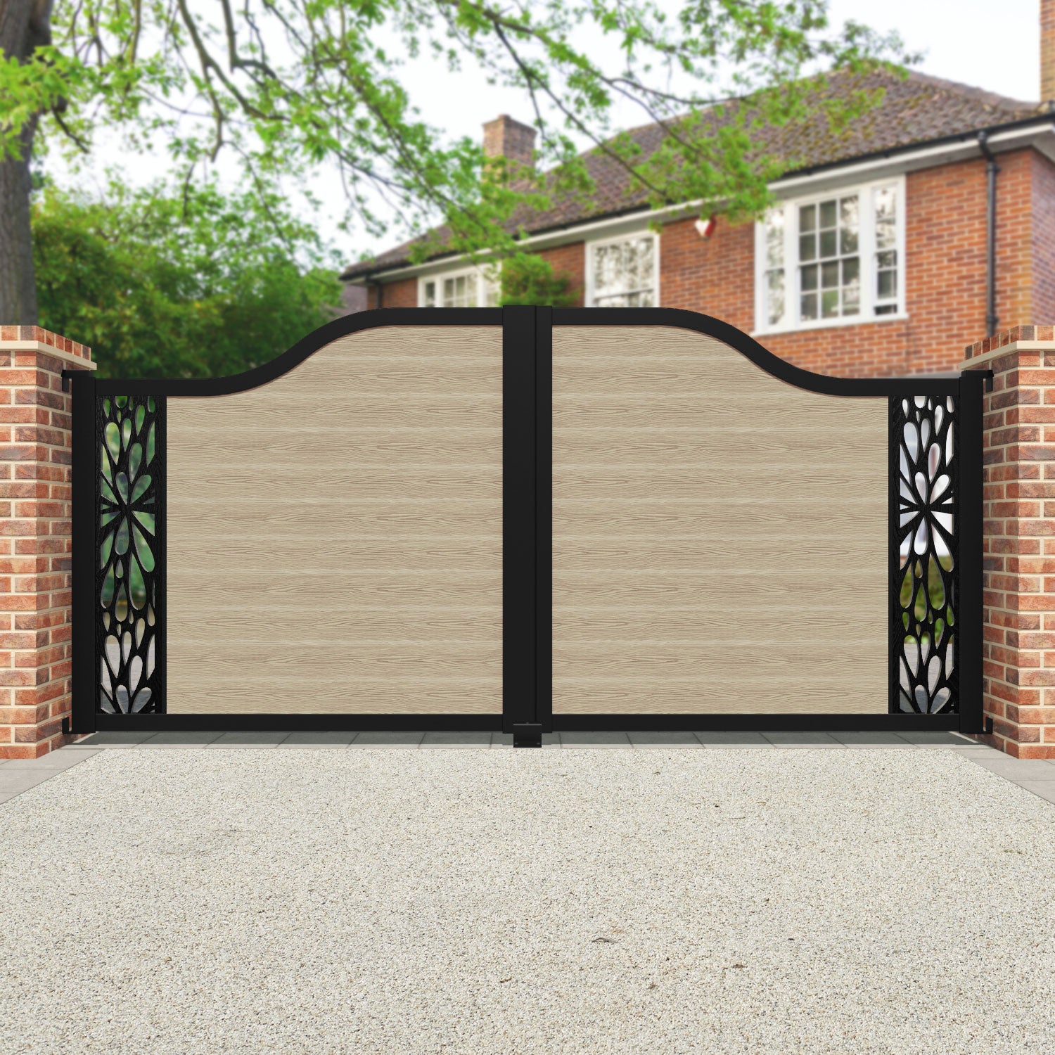 Reference: Classic Blossom Curved Top Driveway Gate - Light Oak - End Screen