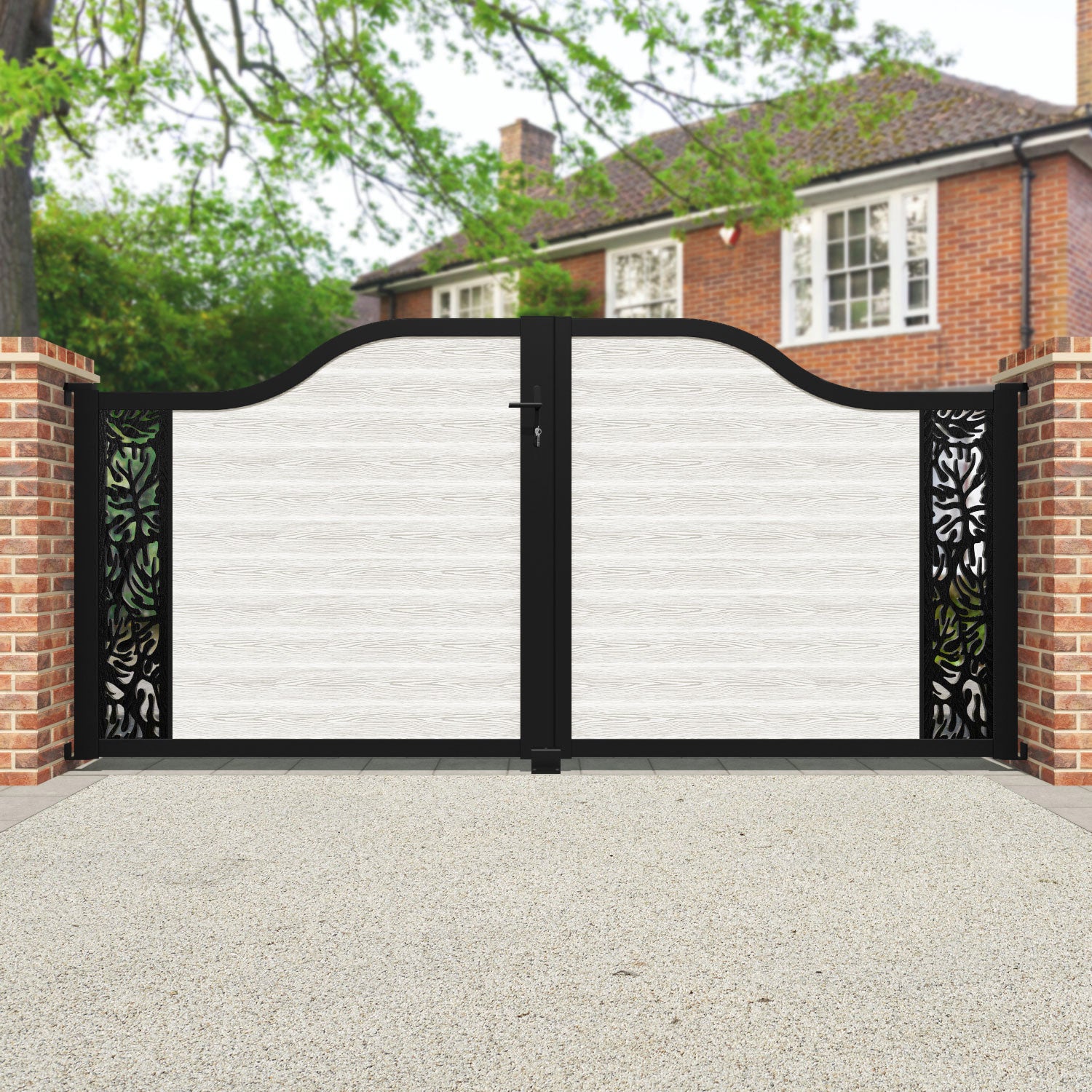 Classic Botanic Curved Top Driveway Gate Light Stone - End Screen