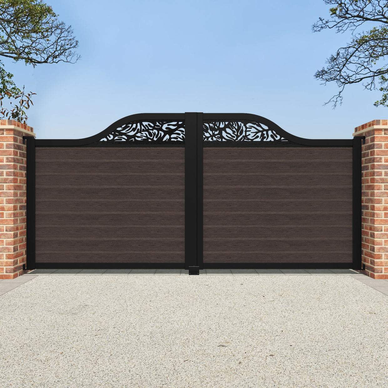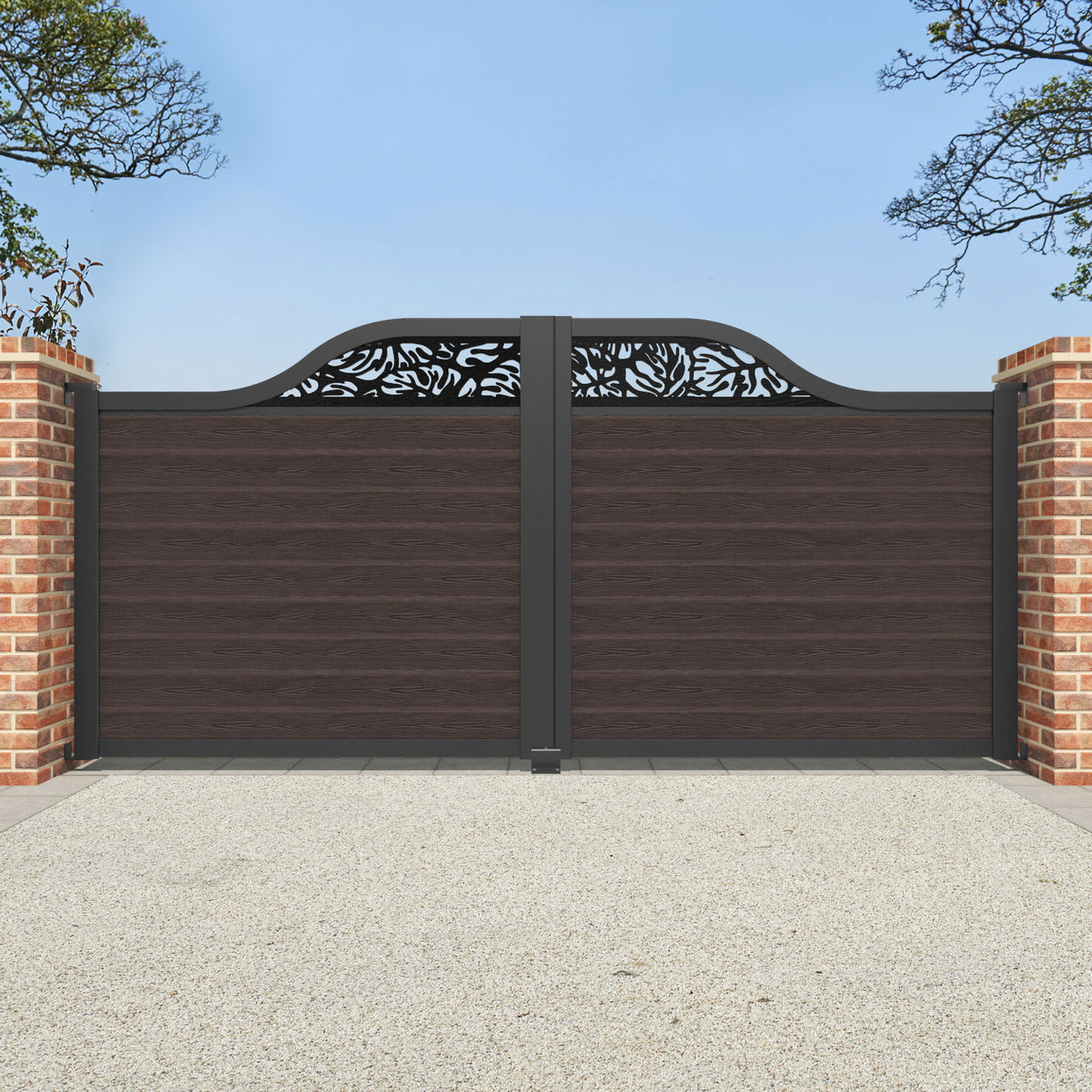 Classic Botanic Curved Top Driveway Gate Mid Brown - Top Screen