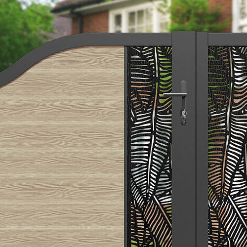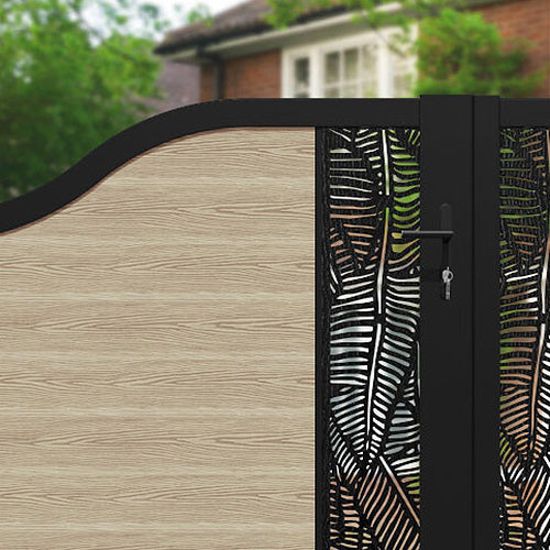 Classic Feather Curved Top Driveway Gate Light Oak - Middle & End Screen