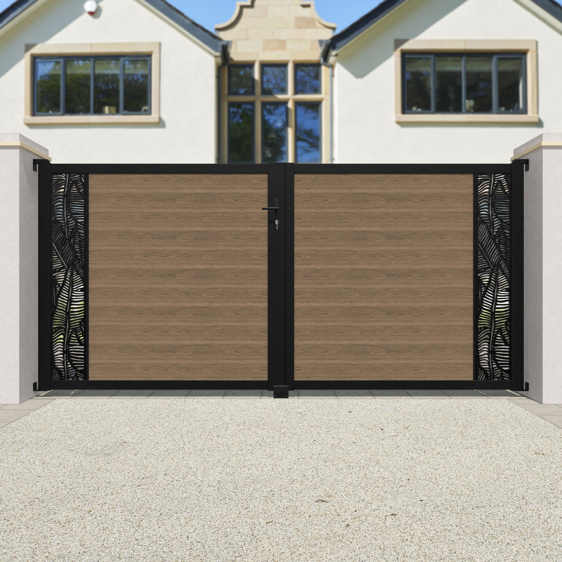 Classic Feather Straight Top Driveway Gate Teak - End Screen