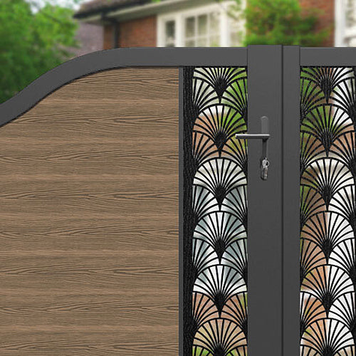 Classic Laurel Curved Top Driveway Gate Teak - Middle Screen