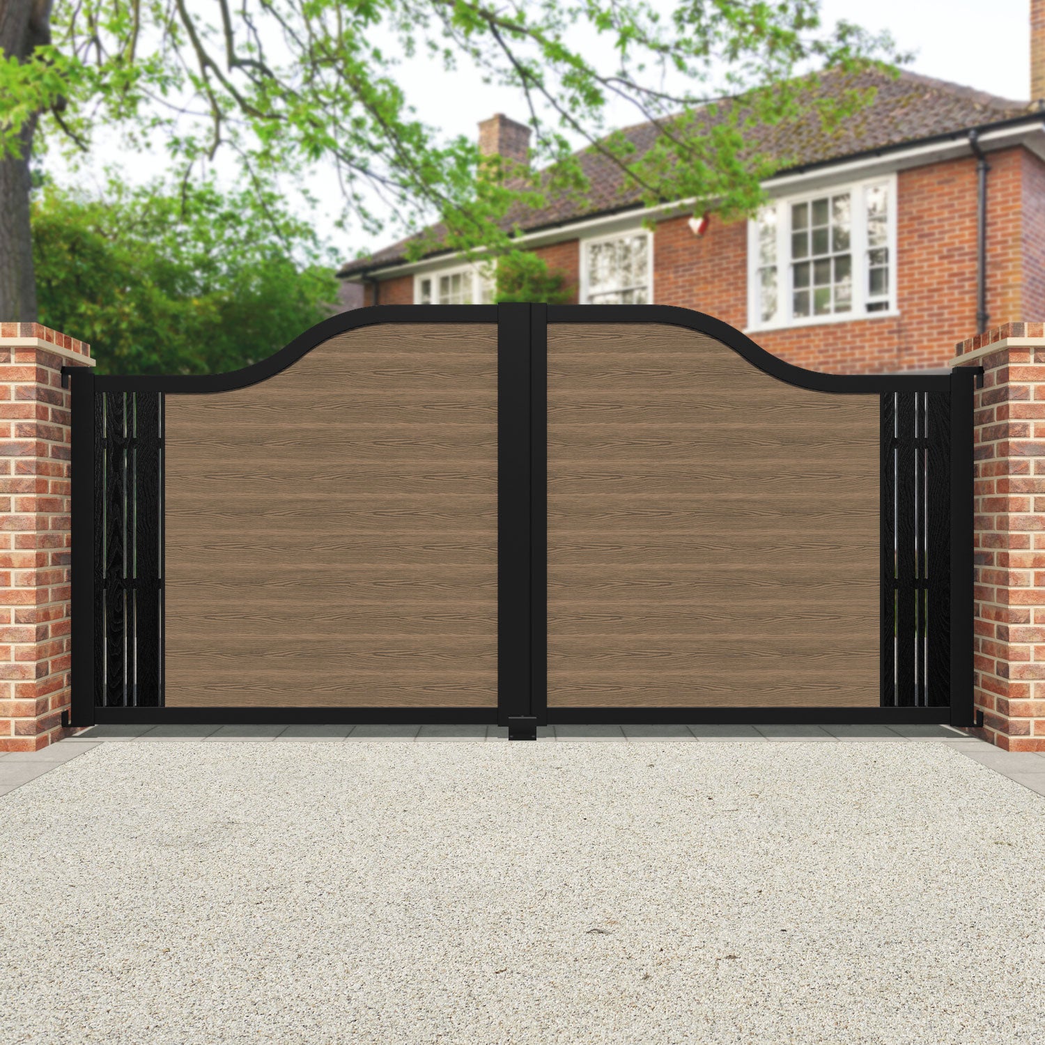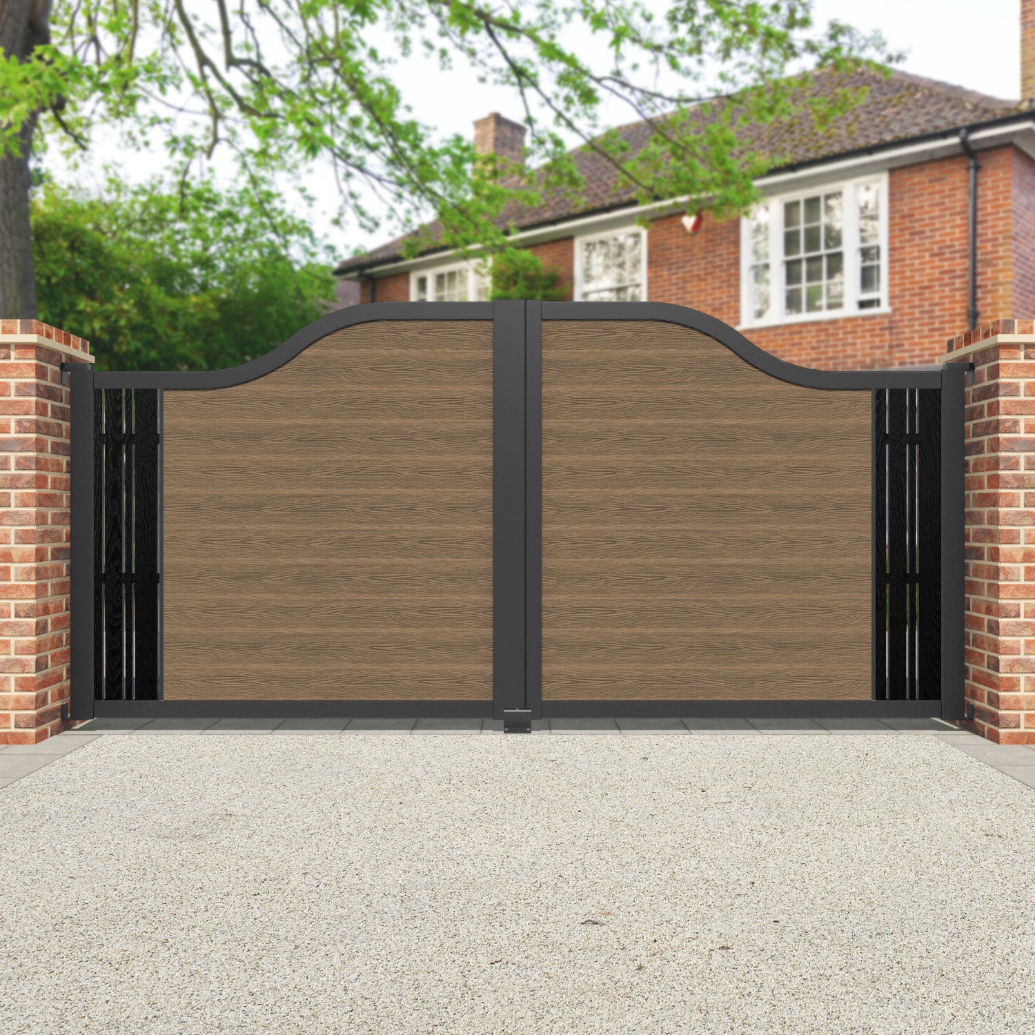 Classic Linea Curved Top Driveway Gate Teak - End Screen