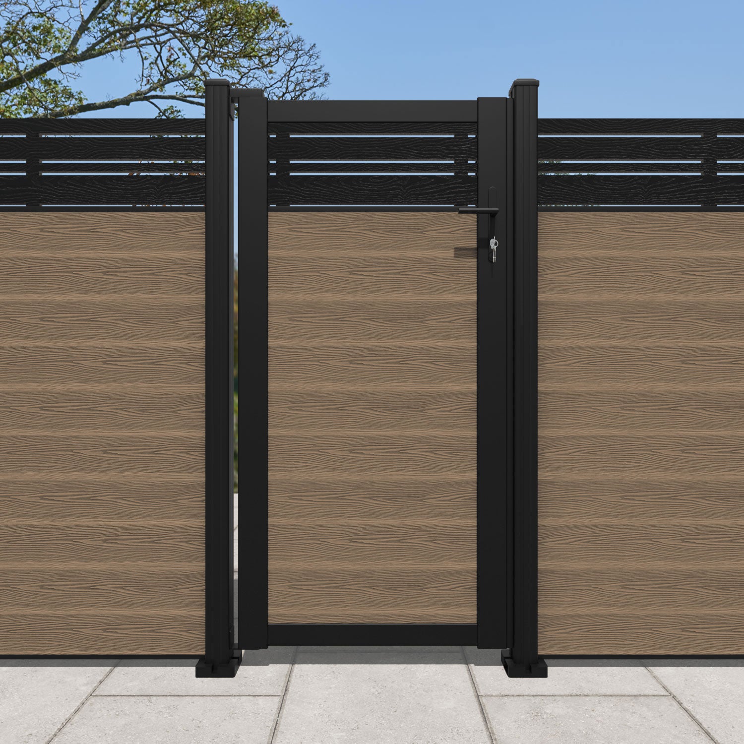 Pair your gate with our eco-friendly composite or aluminium slats for a seamless match with our fencing collections, ensuring a stylish and cohesive look.