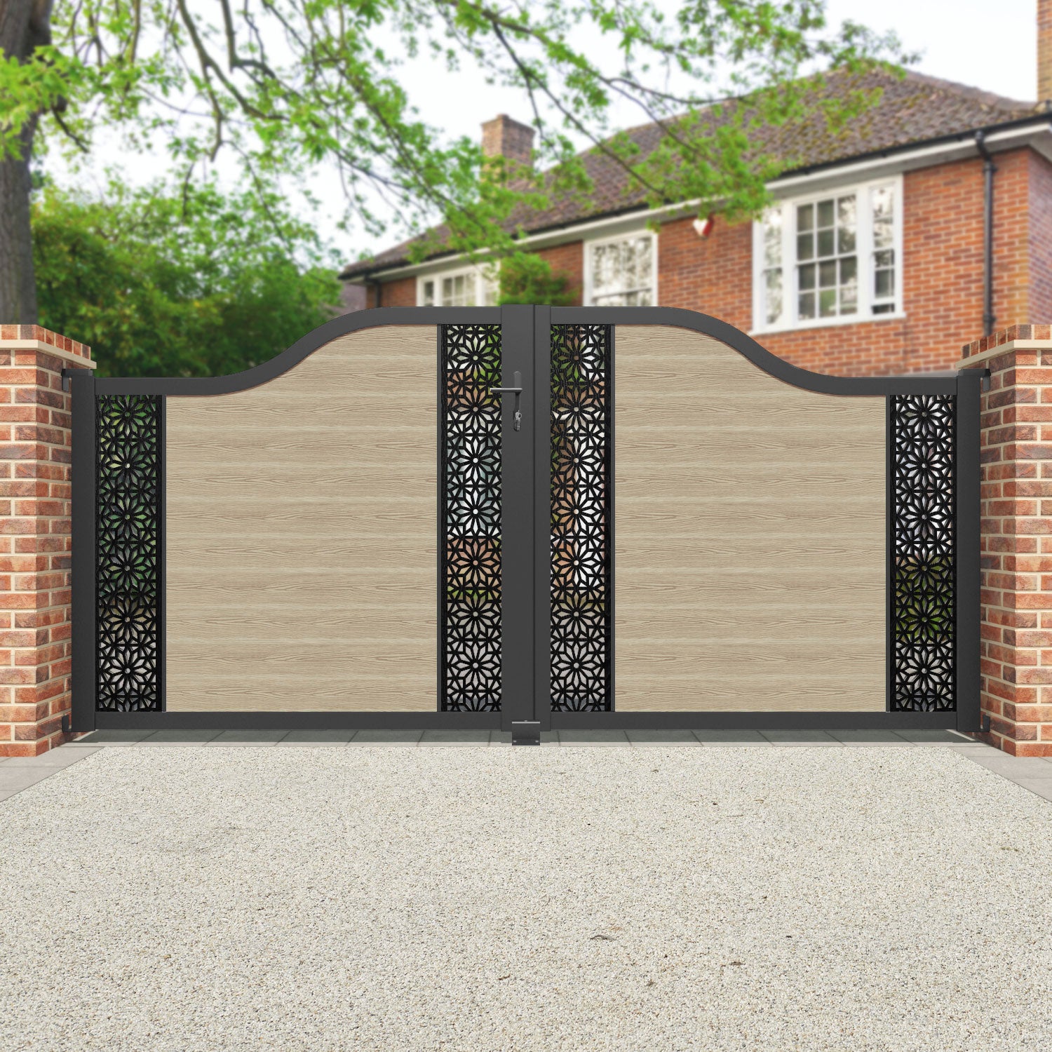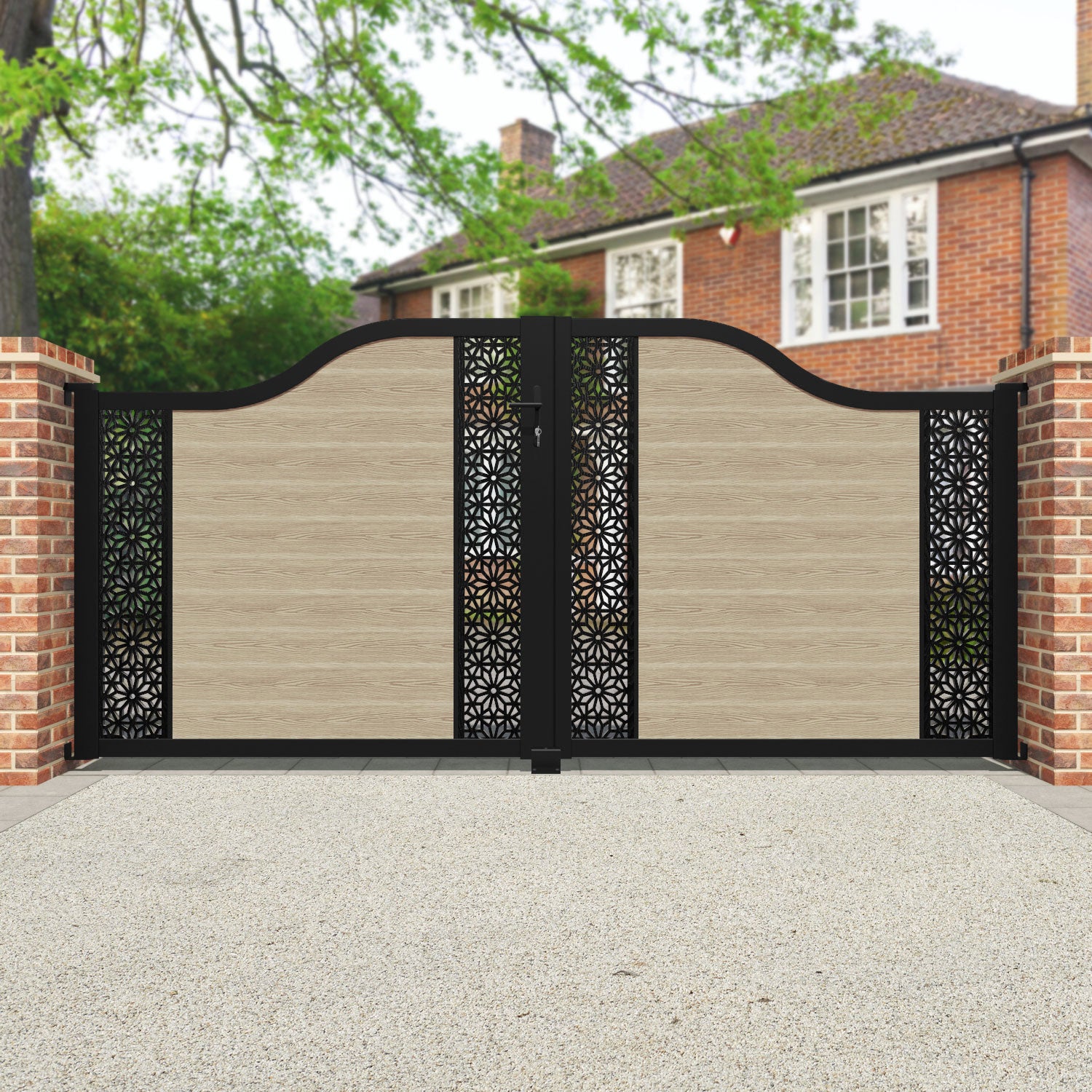 Classic Narwa Curved Top Driveway Gate Light Oak - Middle & End Screen