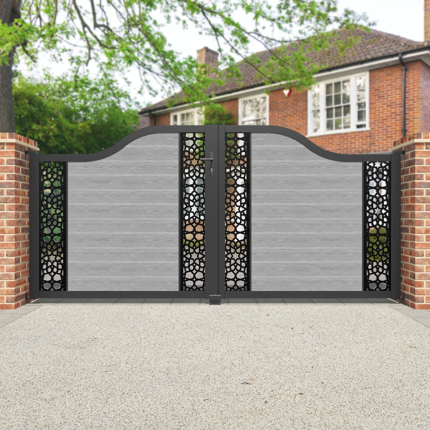 Classic Nazira Curved Top Driveway Gate Light Grey - Middle & End Screen