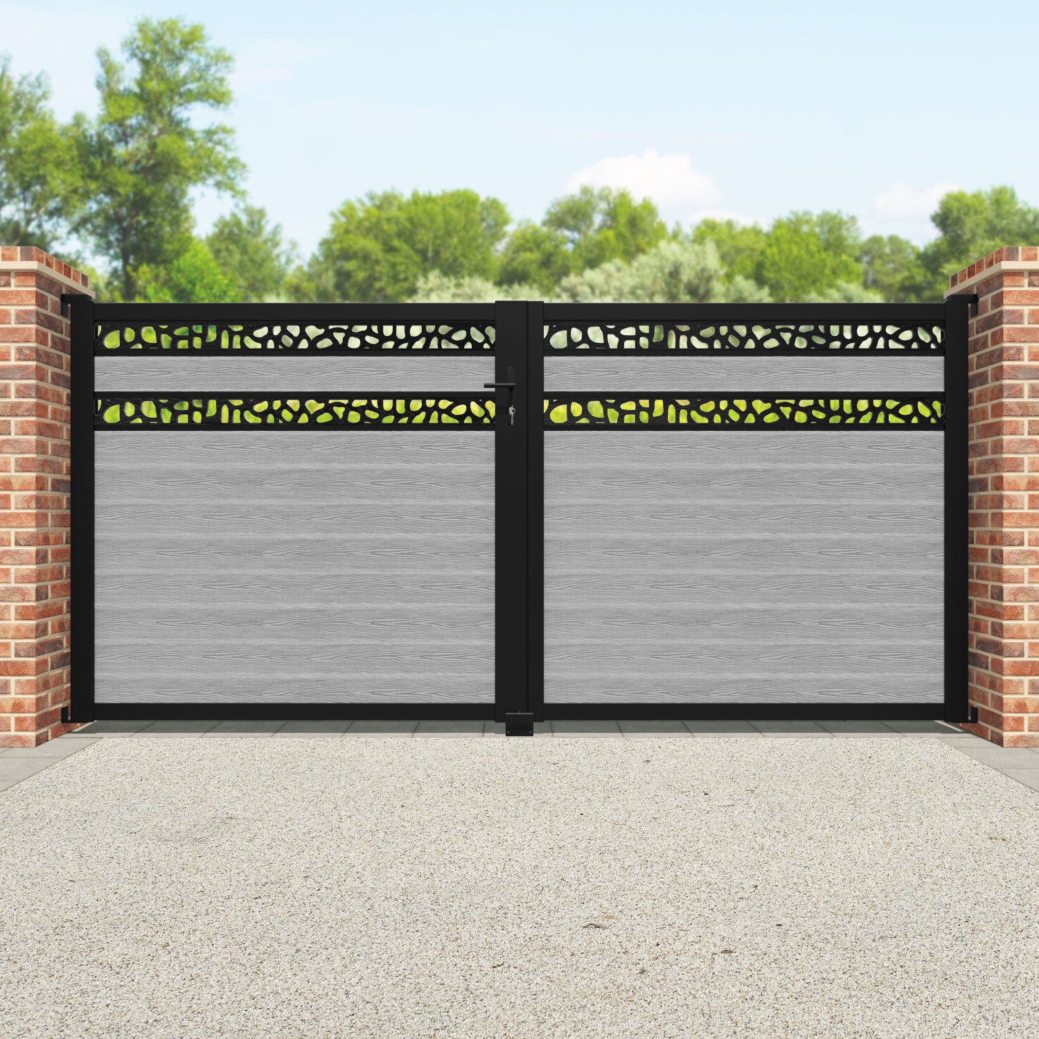 Classic Pebble Split Screen Straight Top Driveway Gate Light Grey - Top Screen
