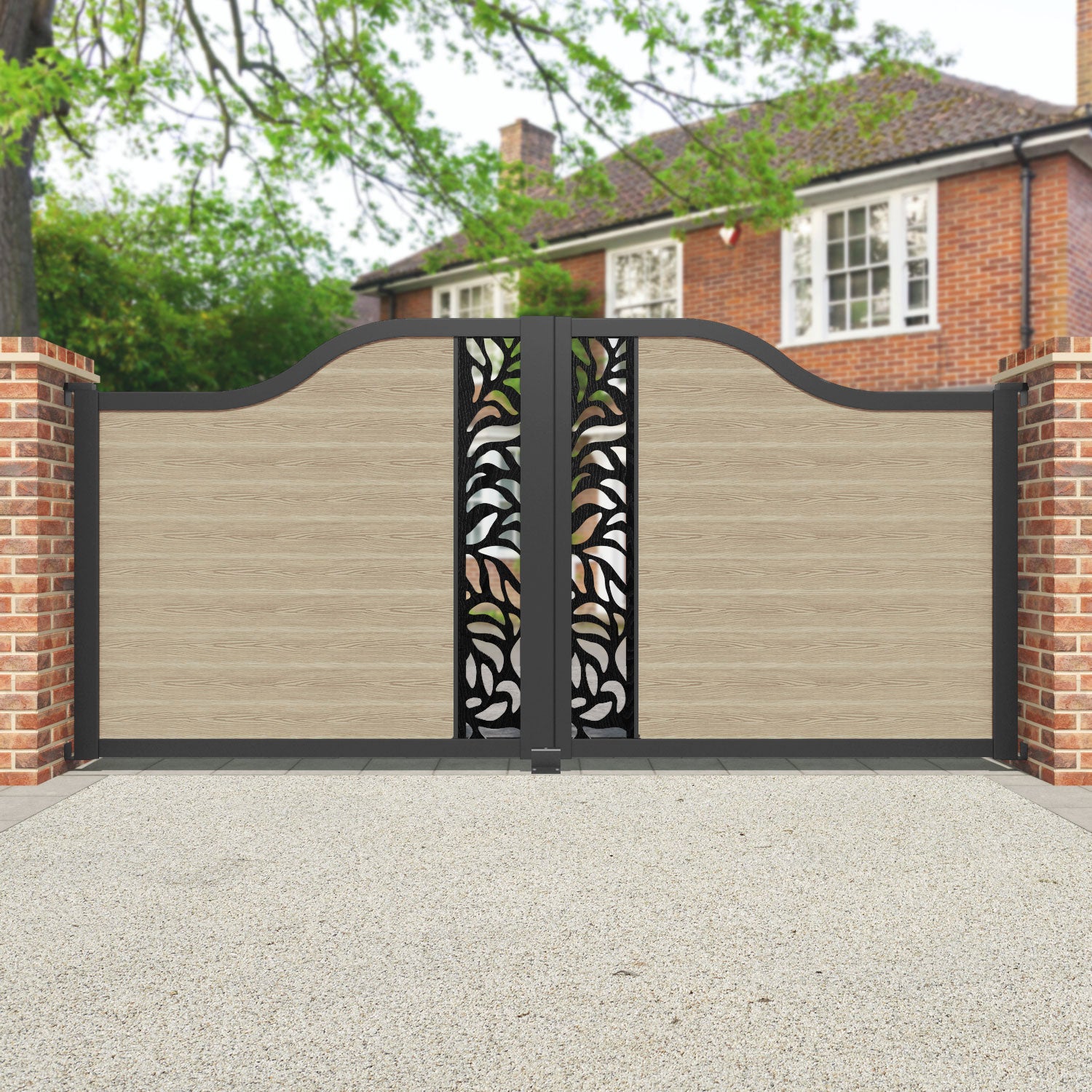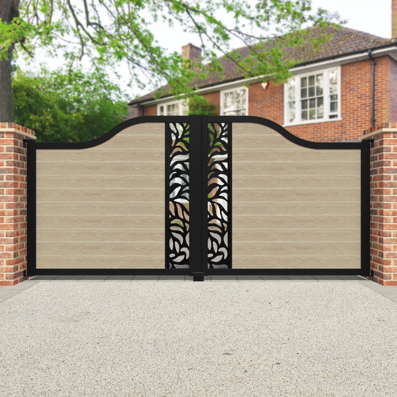 Classic Plume Curved Top Driveway Gate Light Oak - Middle Screen