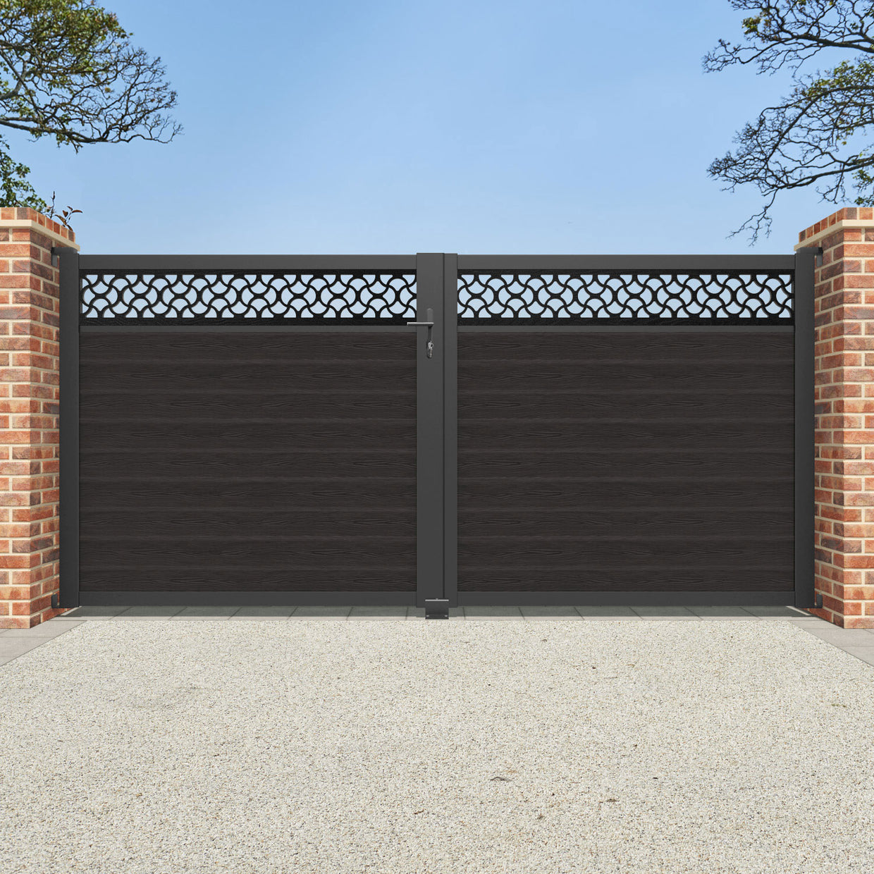 Classic Vida Straight Top Driveway Gate - Dark Oak - Top Screen