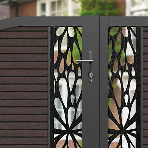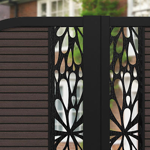 Hudson Blossom Curved Top Driveway Gate Mid Brown - Middle & End Screen