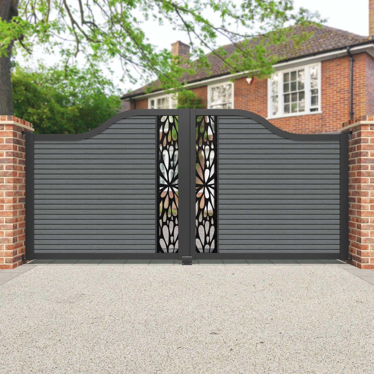 Hudson Blossom Curved Top Driveway Gate Mid Grey - Middle Screen