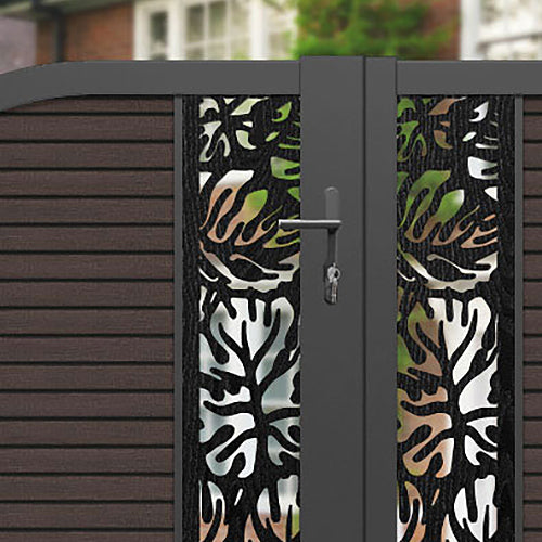 Reference: Hudson Botanic Curved Top Driveway Gate - Mid Brown - Middle & End Screen