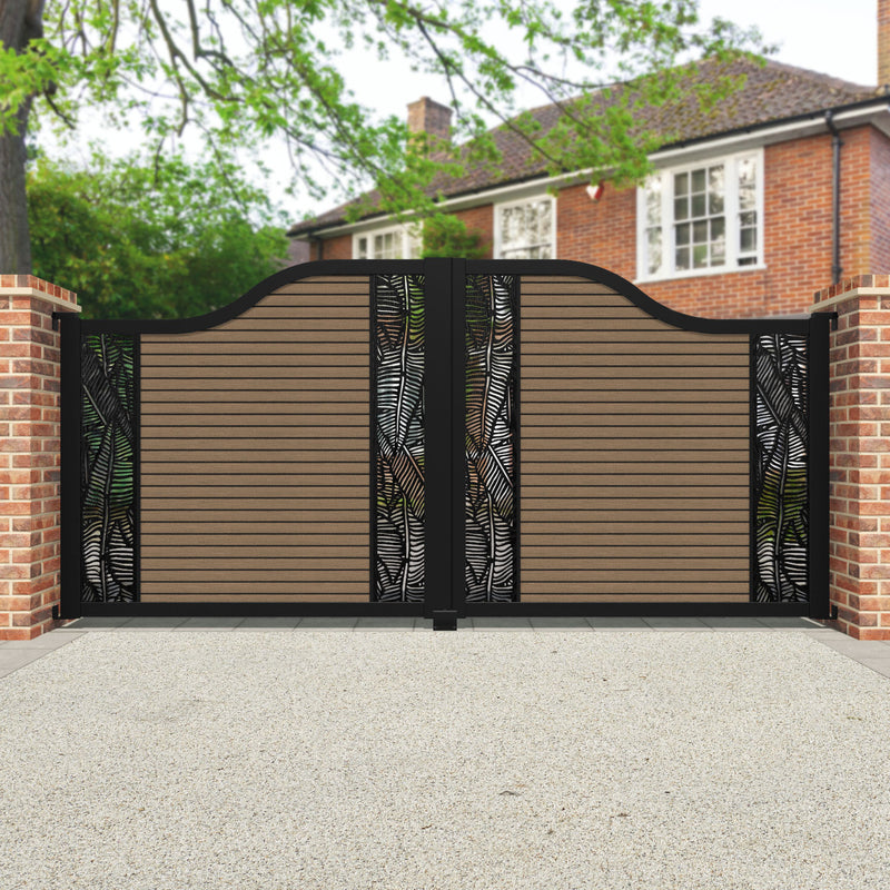 Hudson Feather Curved Top Driveway Gate Teak - Middle & End Screen