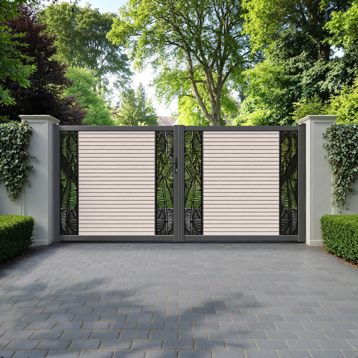 Hudson Feather Straight Top Driveway Gate Mid Stone - Middle & End Screen