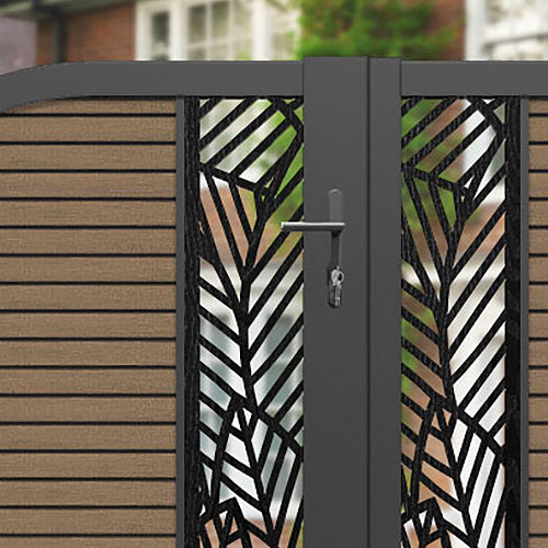 Hudson Habitat Curved Top Driveway Gate Teak - Middle & End Screen