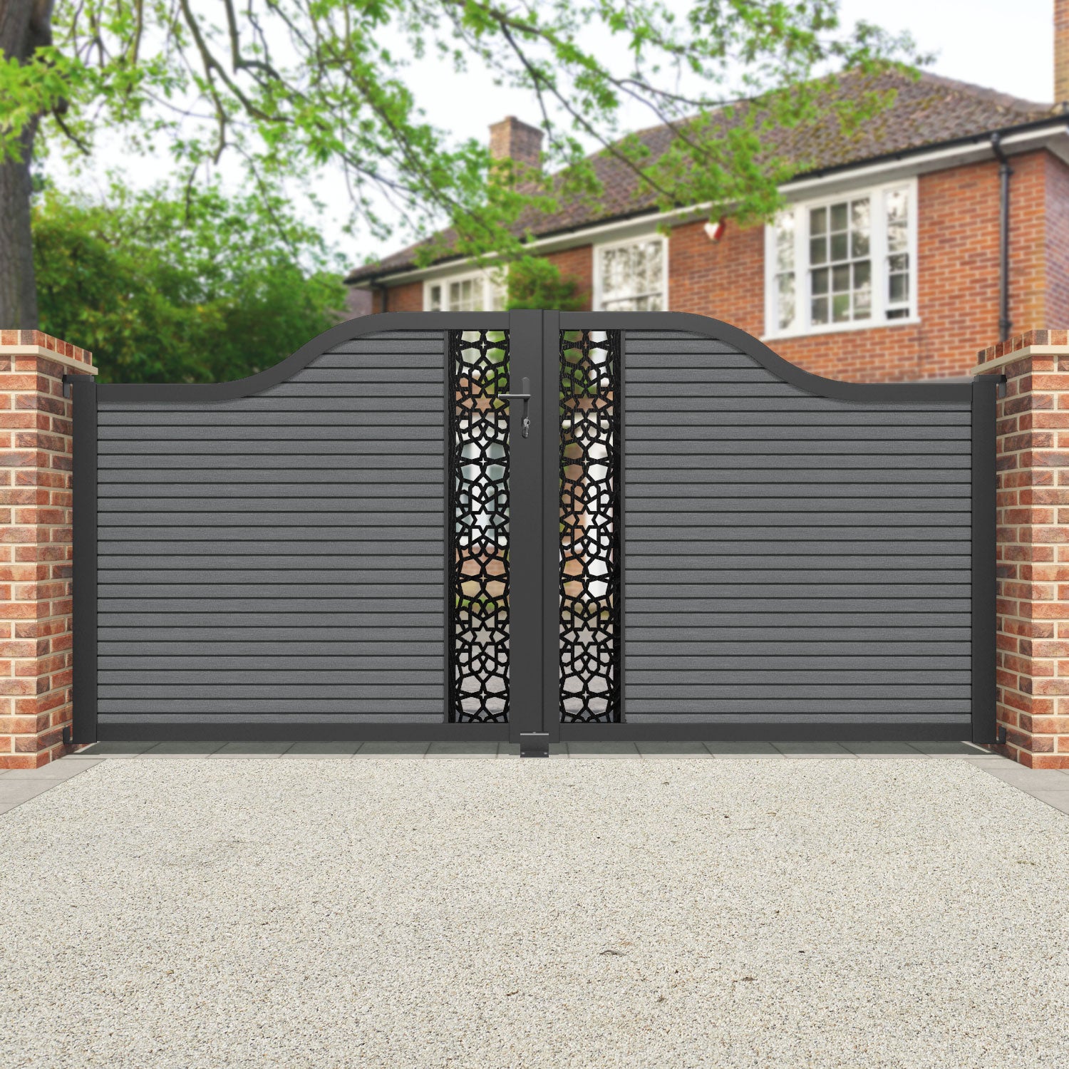 Hudson Nazira Curved Top Driveway Gate Mid Grey - Middle Screen