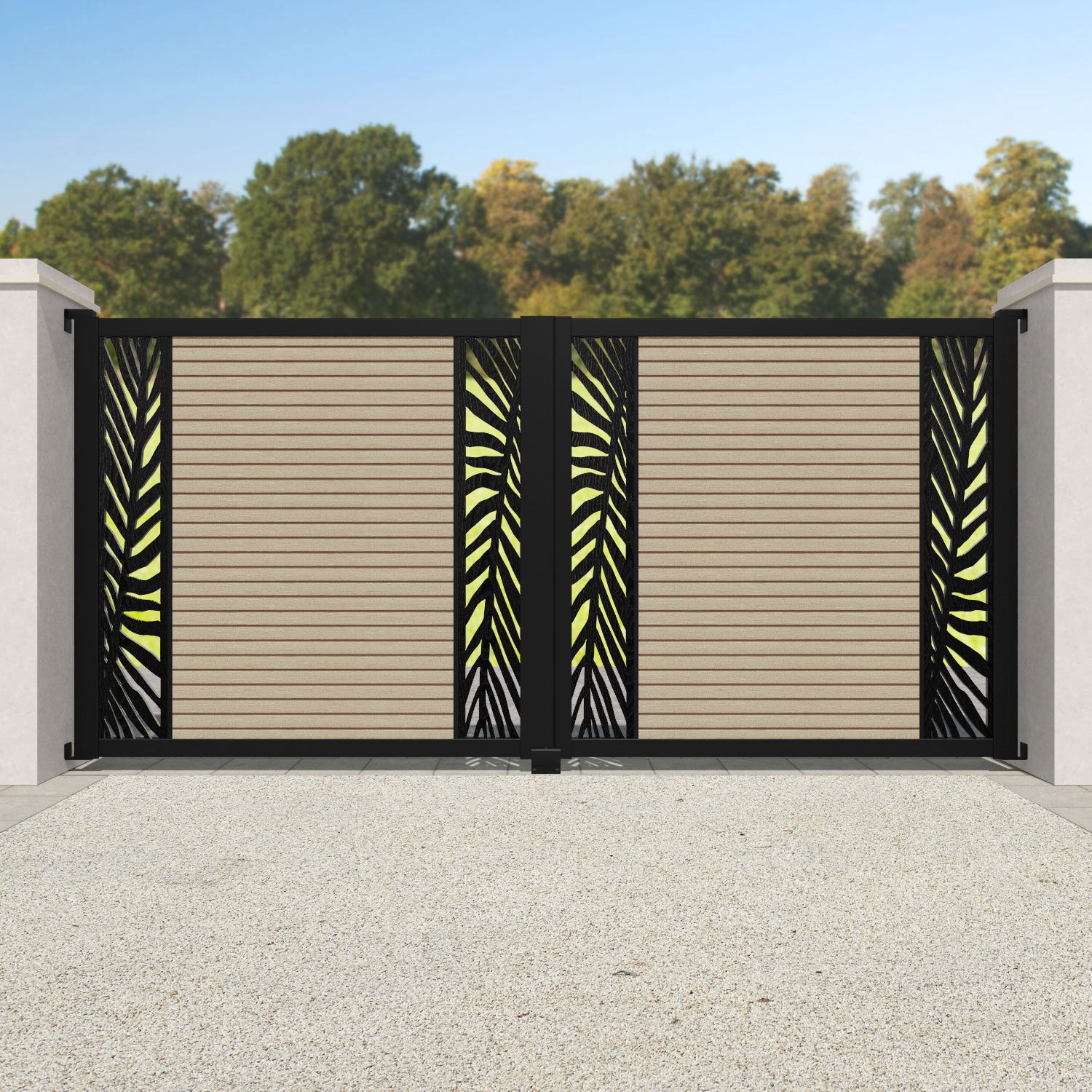 Hudson Palm Straight Top Driveway Gate Light Oak- Middle & End Screen