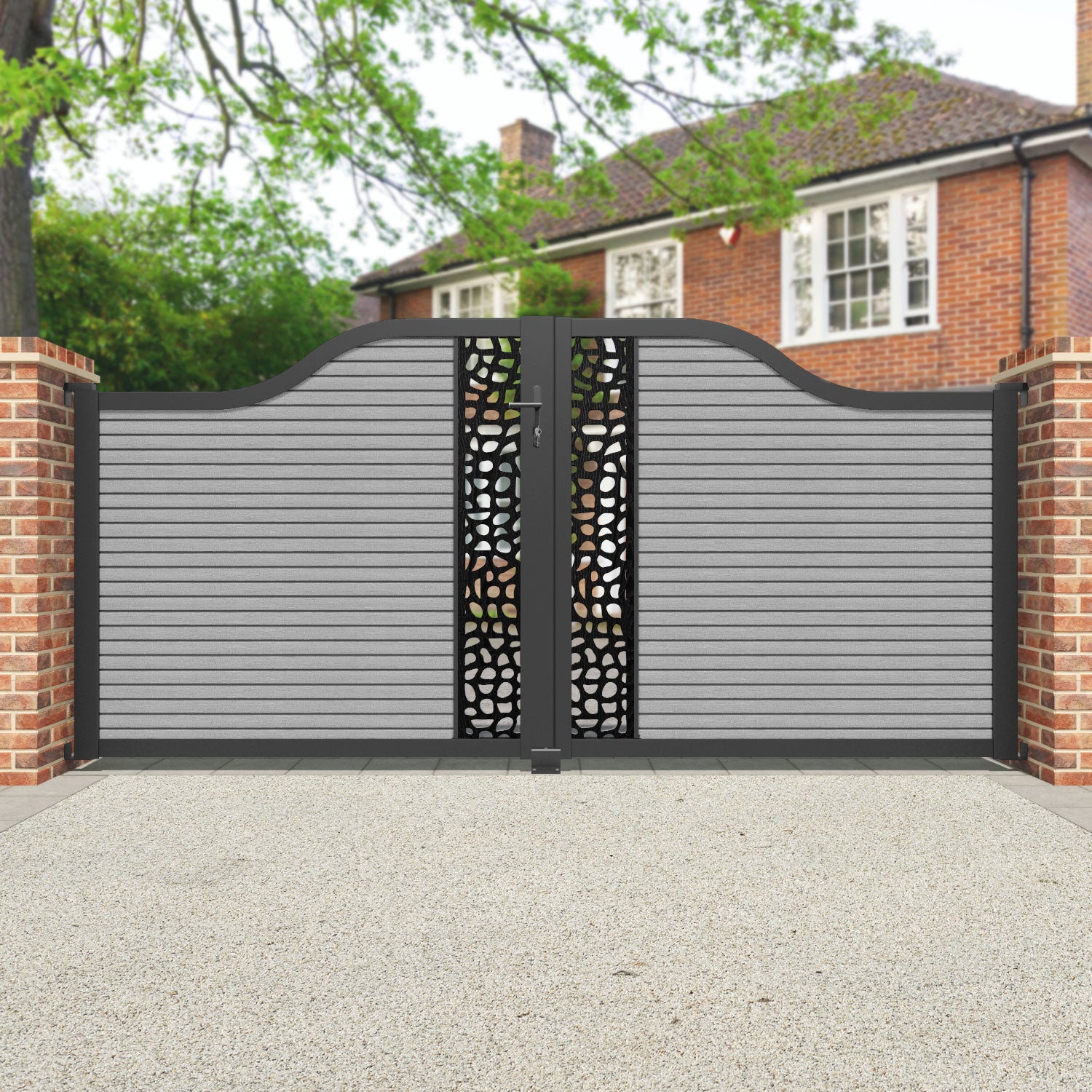 Hudson Pebble Curved Top Driveway Gate Light Grey - Middle Screen