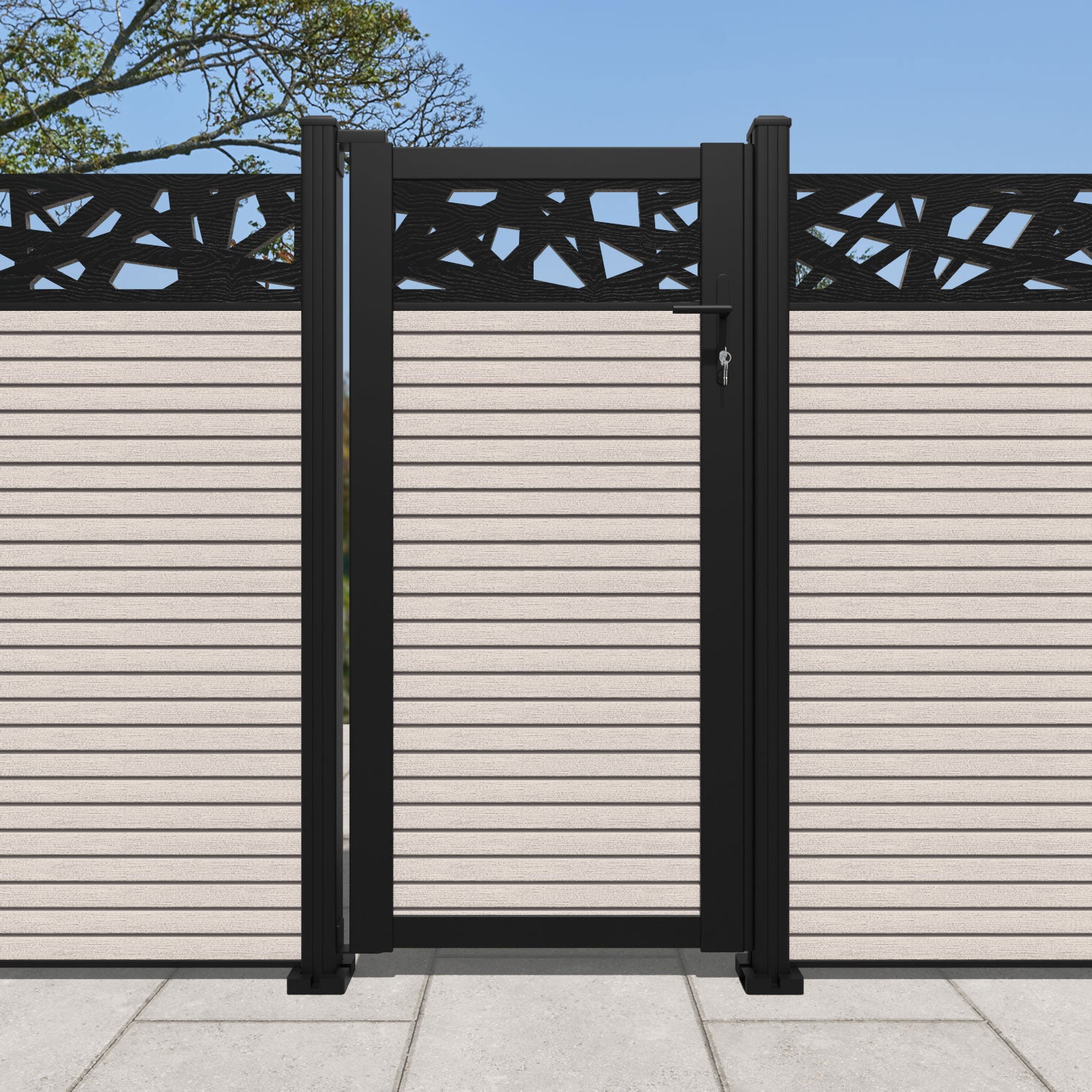 Pair your gate with our eco-friendly composite or aluminium slats for a seamless match with our fencing collections, ensuring a stylish and cohesive look.