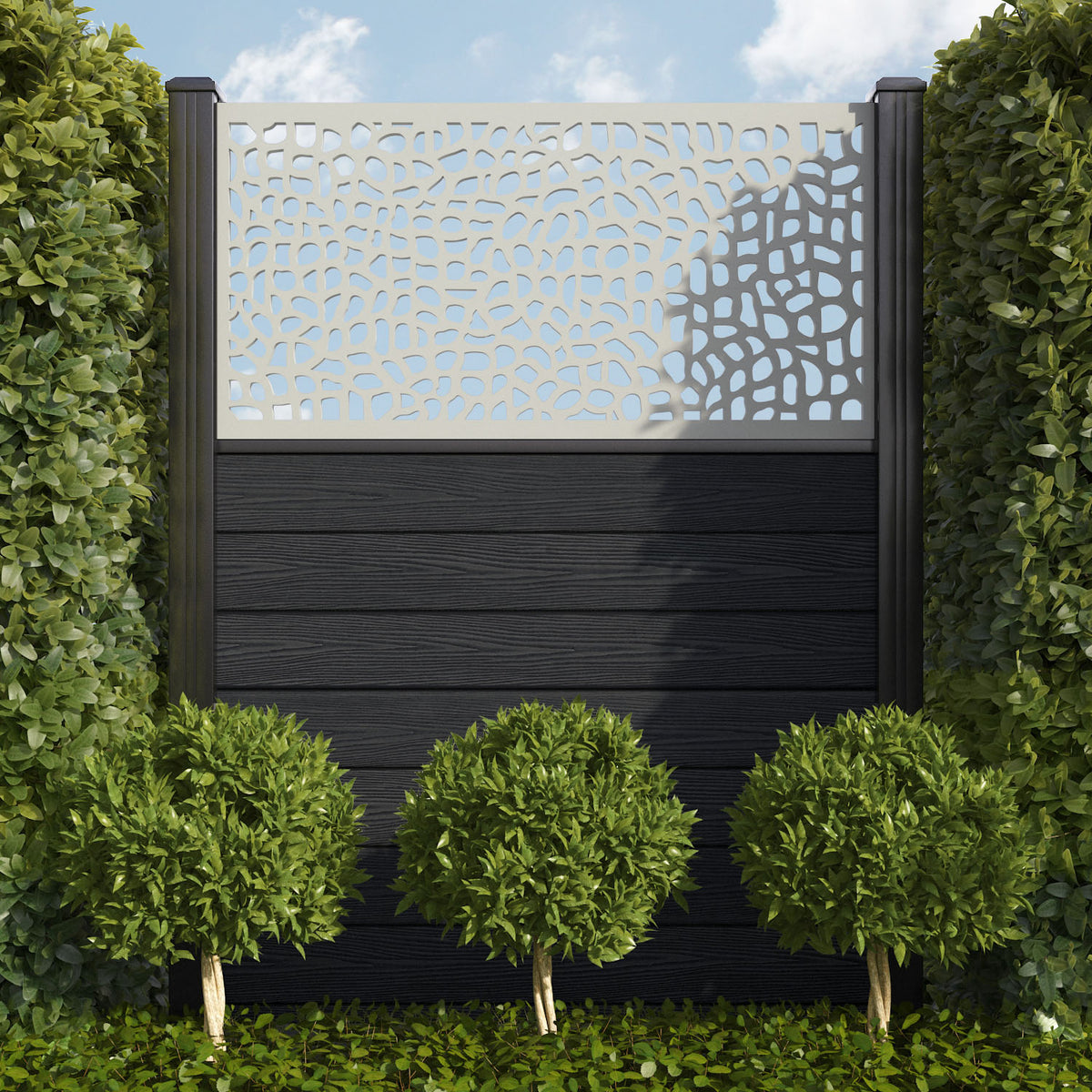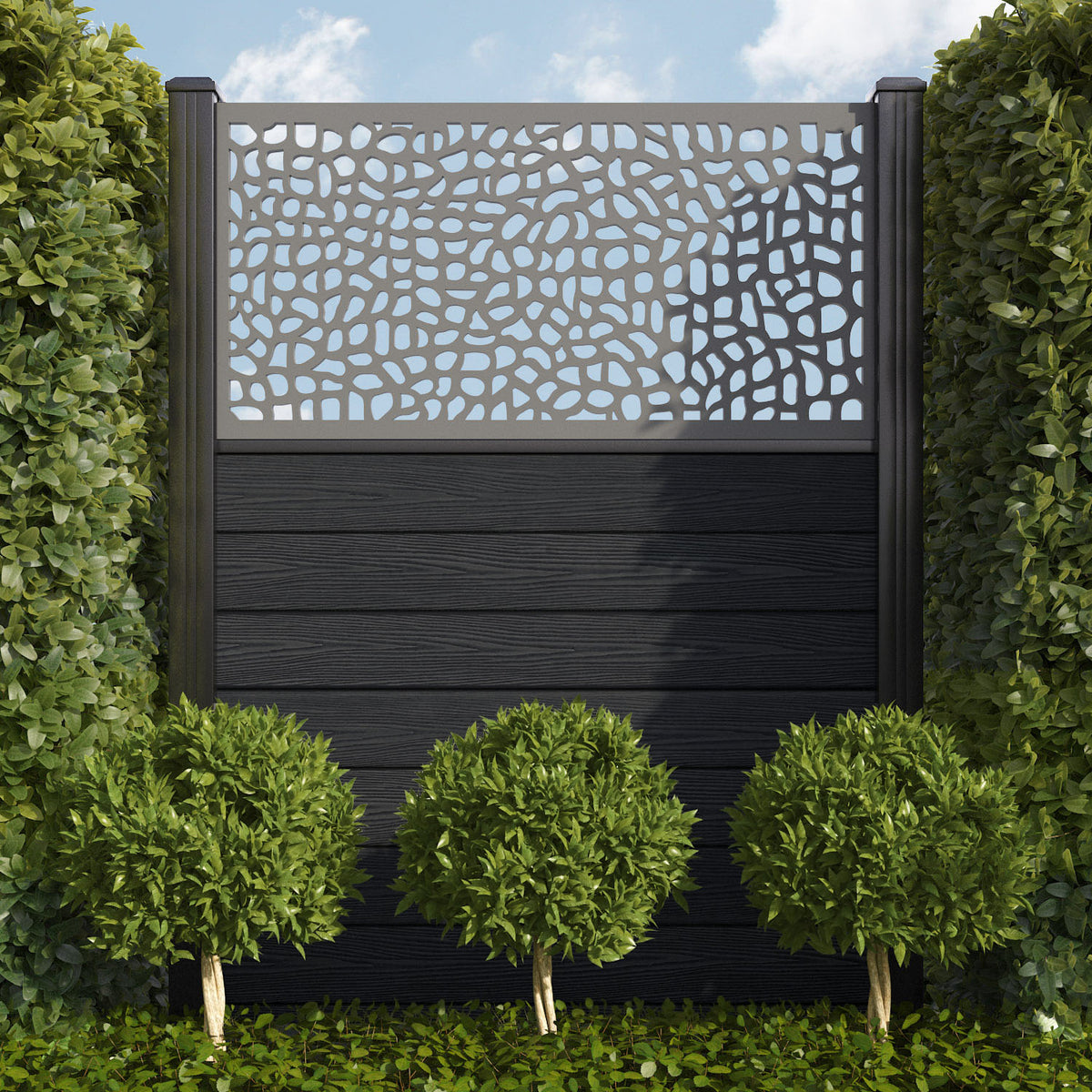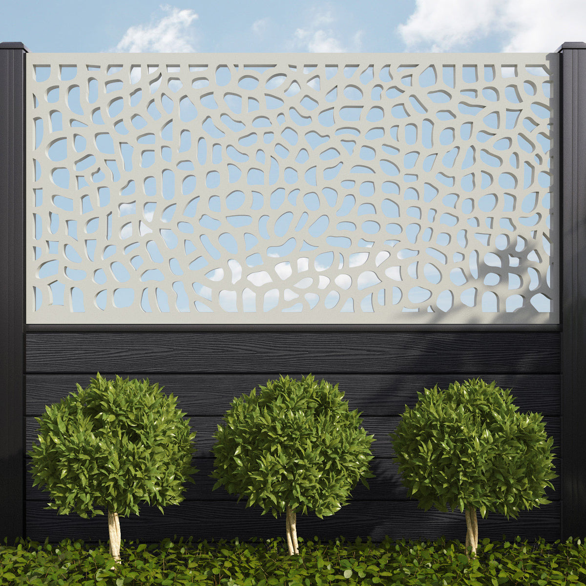Pebble is one of our most versatile screens, equally suited to both modern and traditional outdoor spaces. This tasteful, textured design can evoke the charming cobbles of historic British streets or the peace and tranquillity of white stone beaches. If you’re feeling bold, use multiple Pebble screens in close proximity to maximise the visual impact.