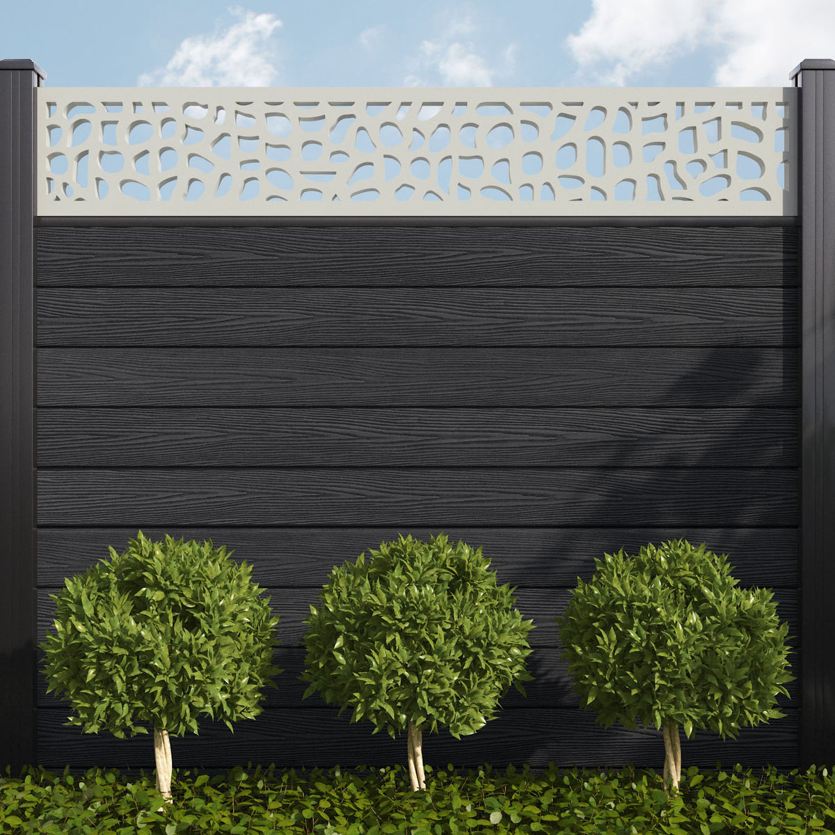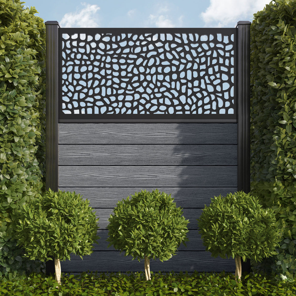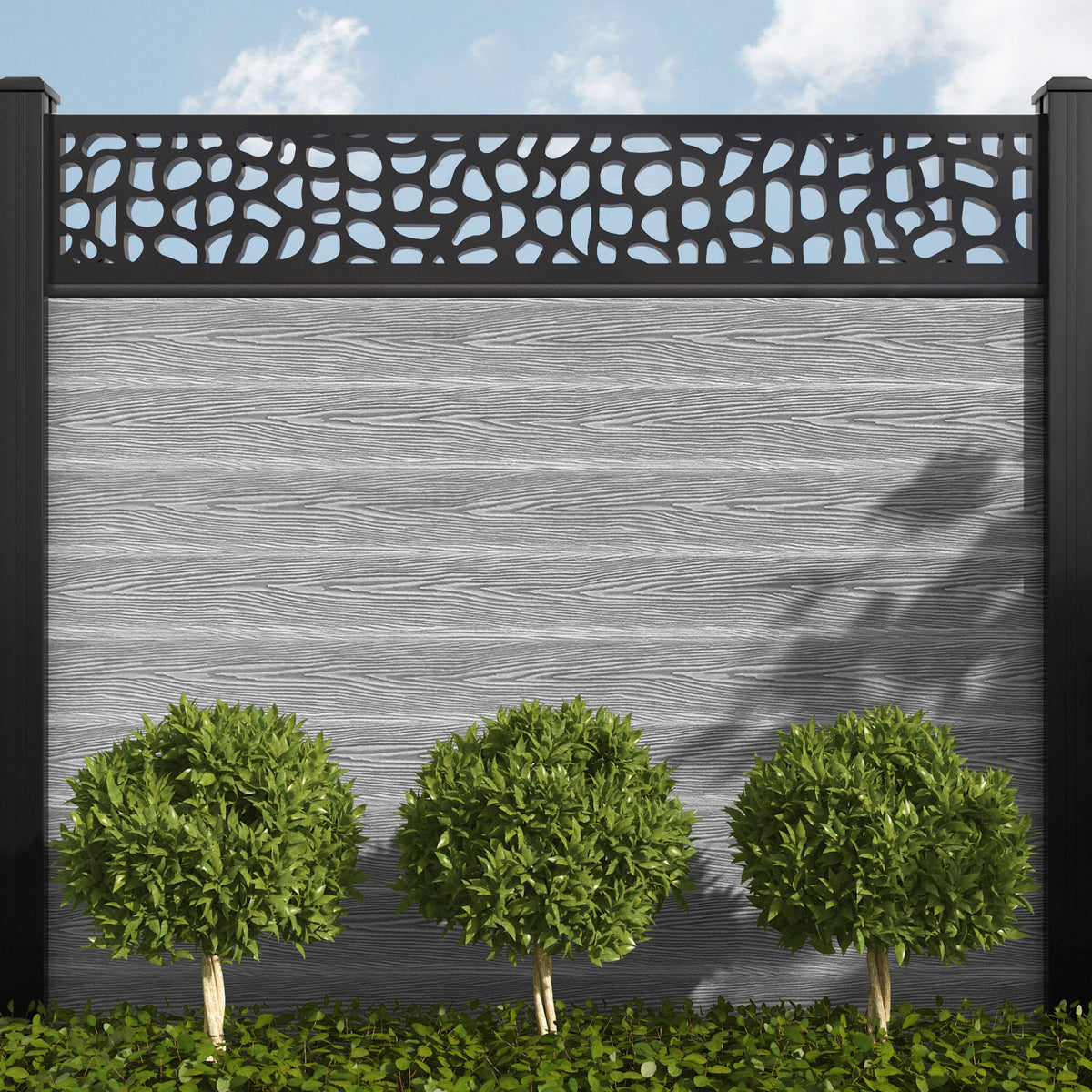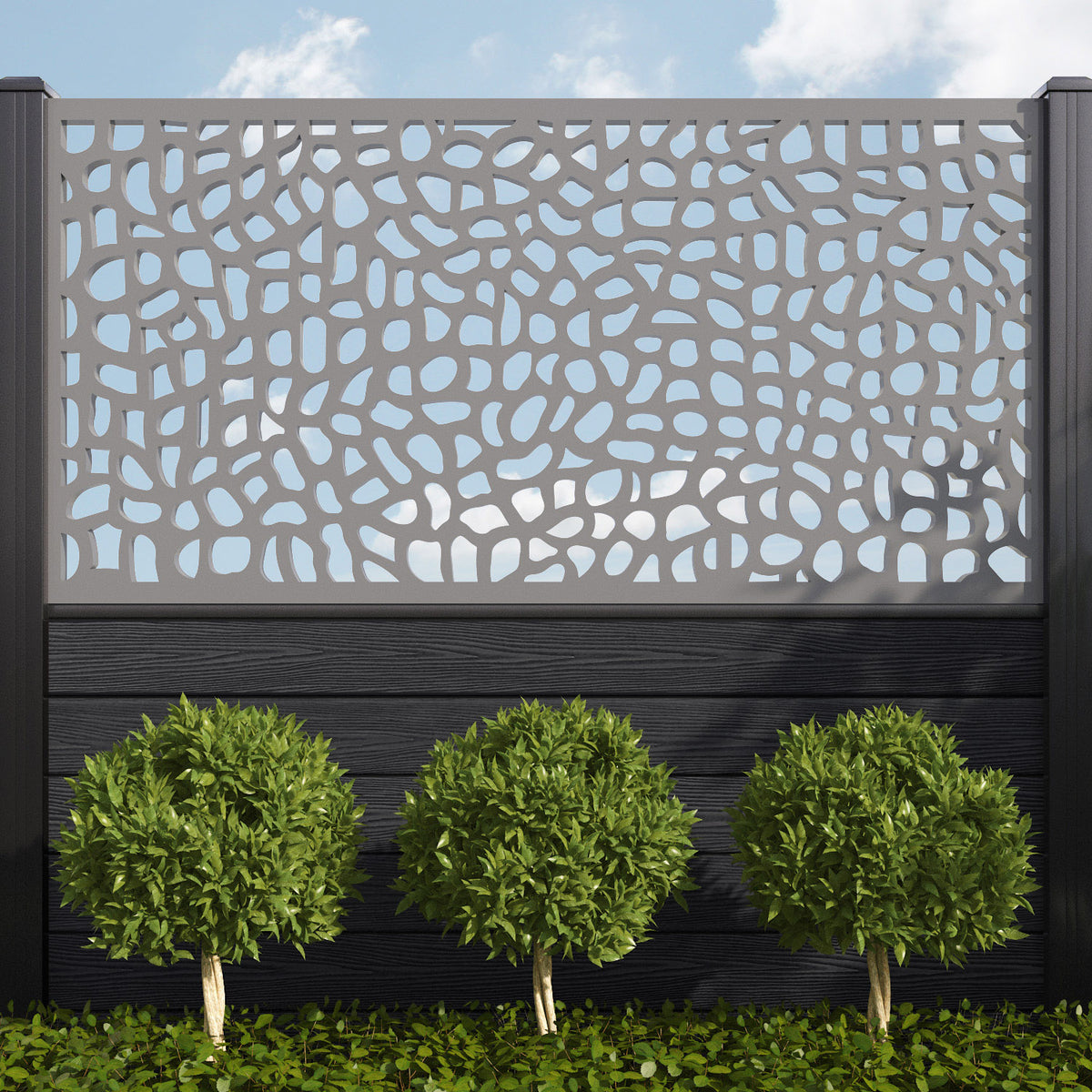 Pebble is one of our most versatile screens, equally suited to both modern and traditional outdoor spaces. This tasteful, textured design can evoke the charming cobbles of historic British streets or the peace and tranquillity of white stone beaches. If you’re feeling bold, use multiple Pebble screens in close proximity to maximise the visual impact.