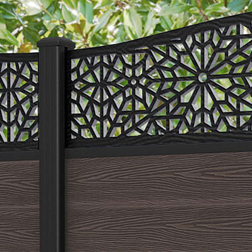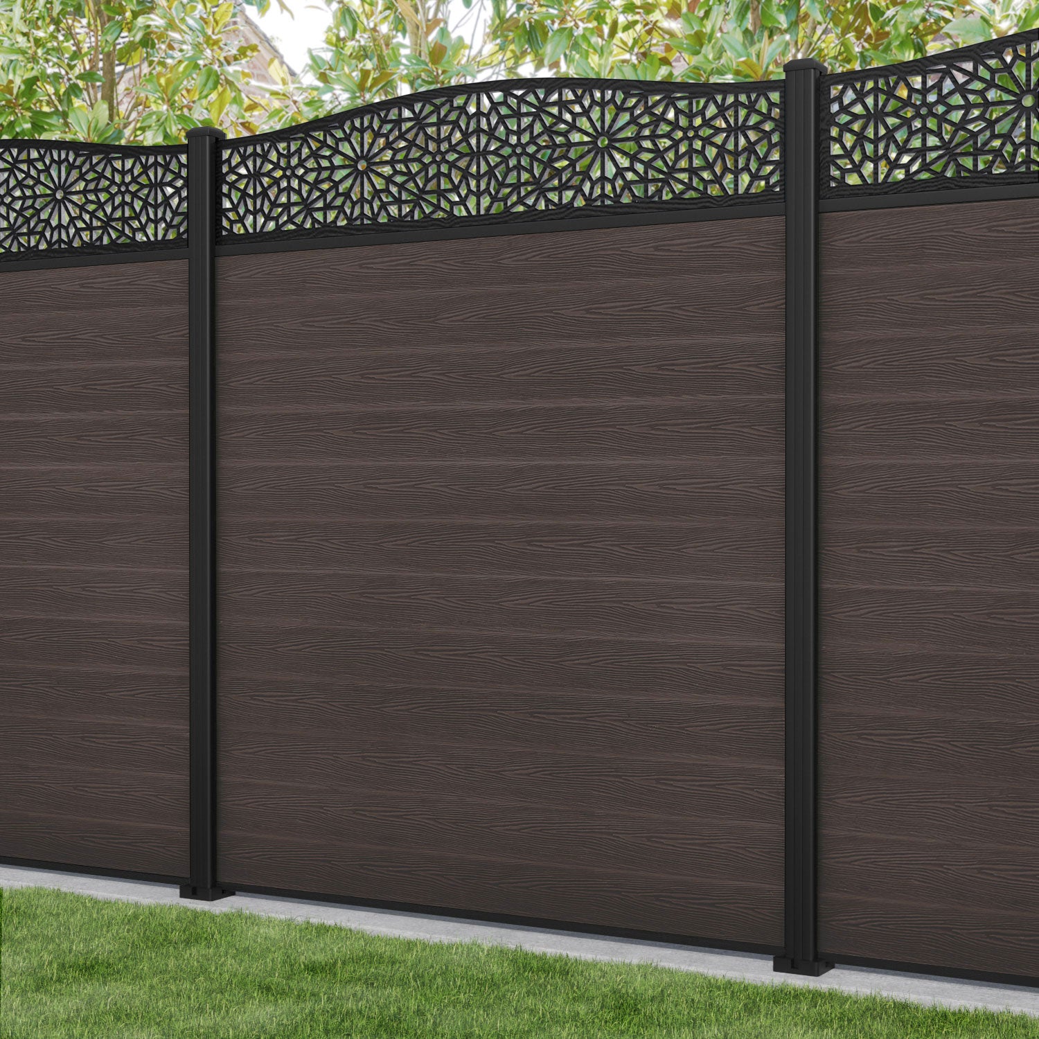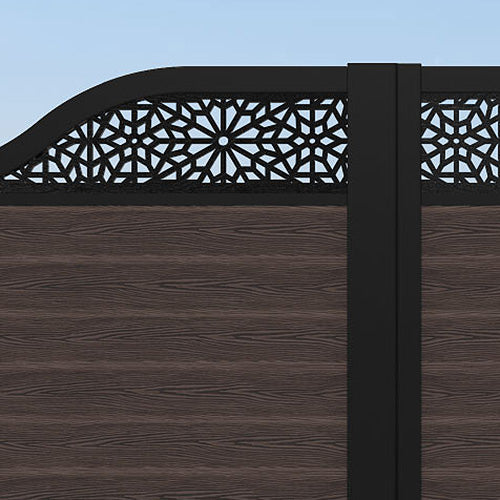 Classic Alnara Curved Top Fence Panel Mid Brown - with our aluminium posts