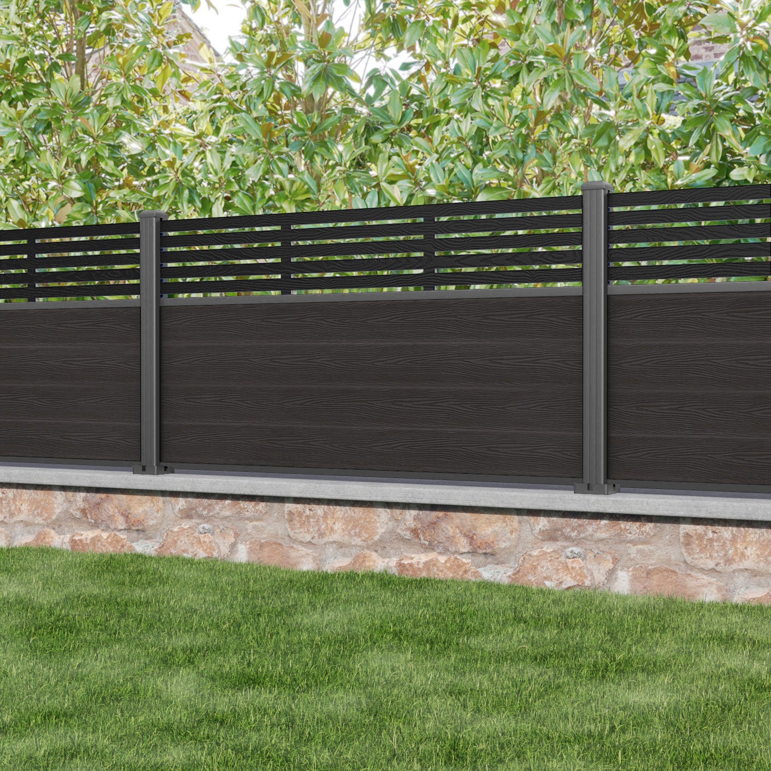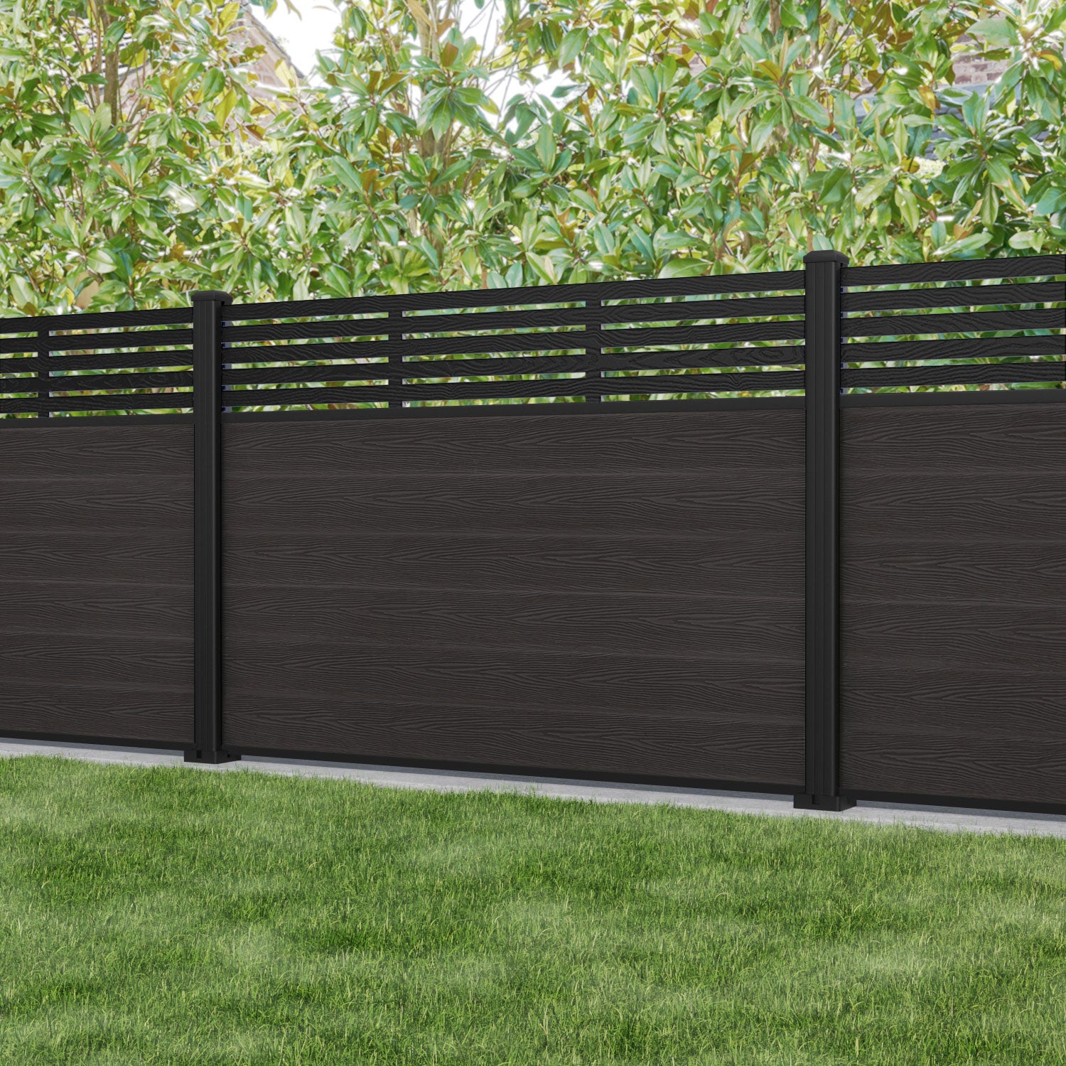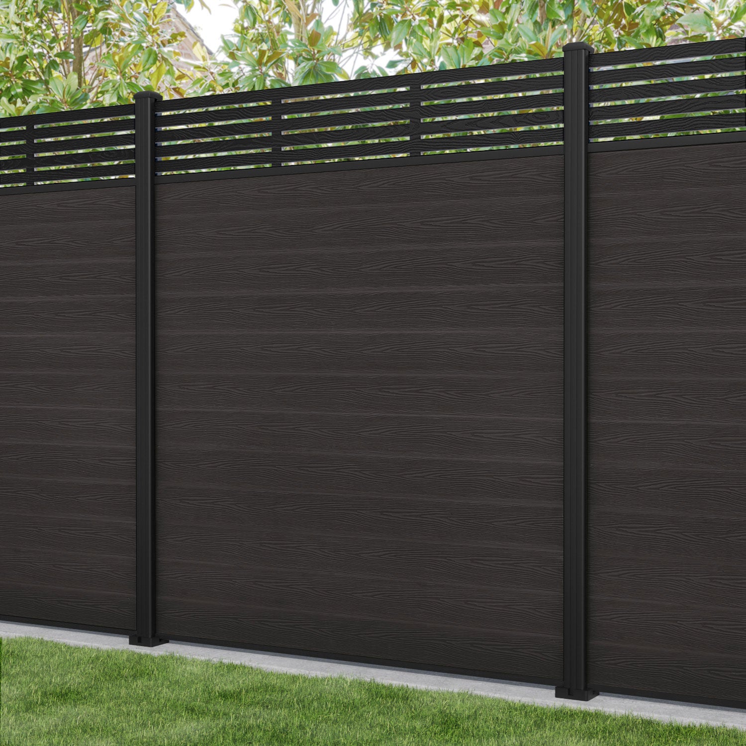 Classic Aspen Fence Panel Dark Oak - with our aluminium posts