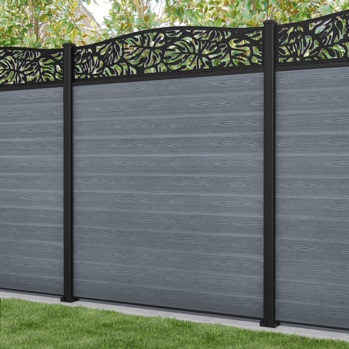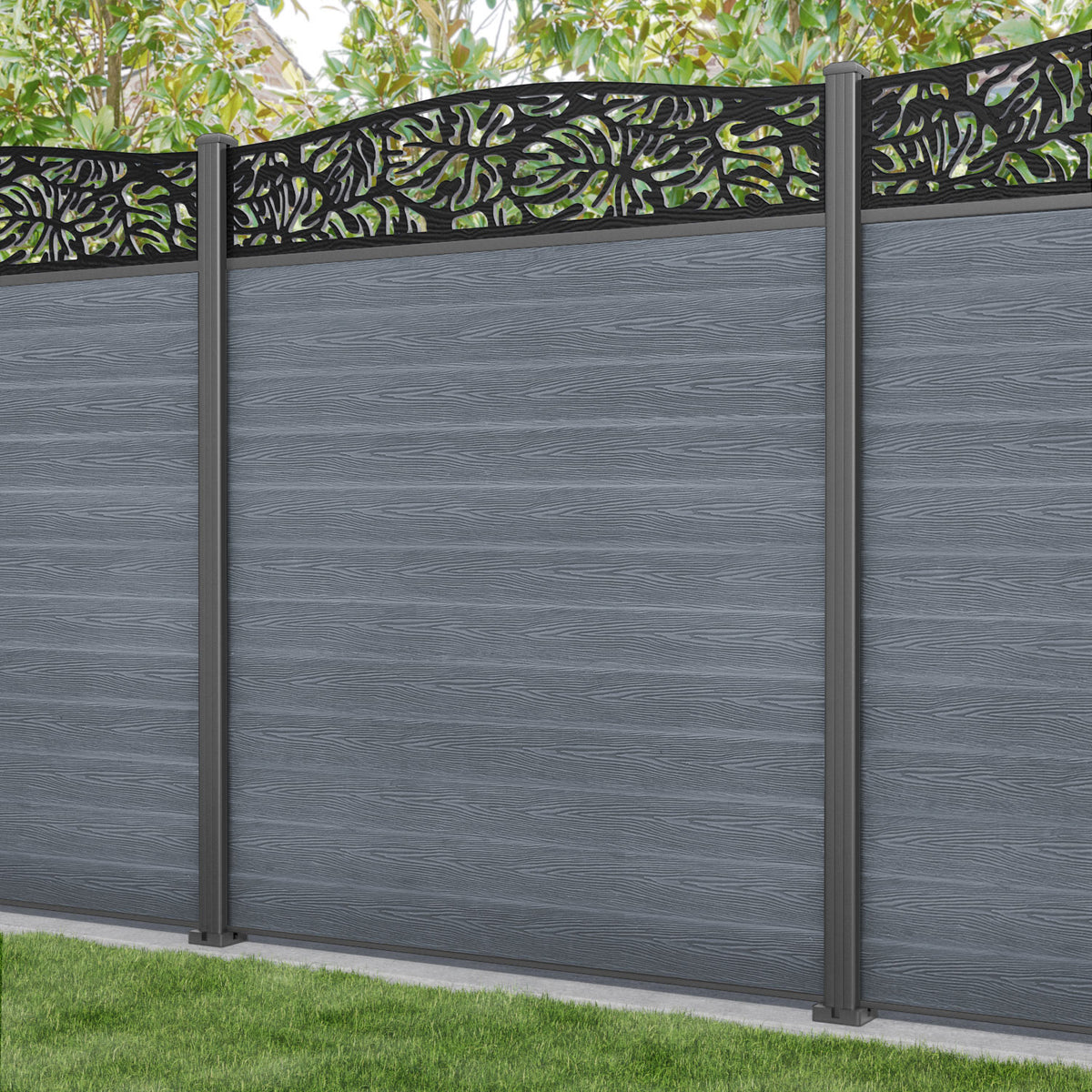Classic Botanic Curved Top Fence Panel Anthracite - with our aluminium posts